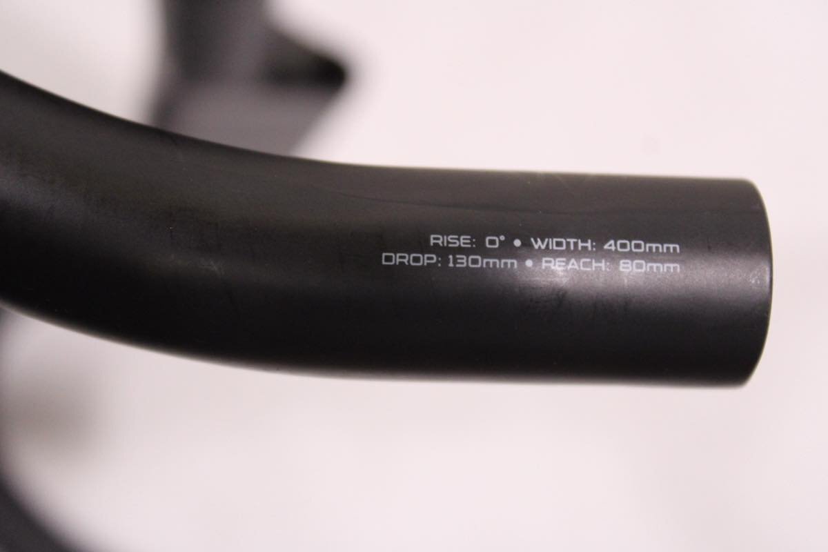 | 仕様 | クランプ径:Φ31.8mm 計測重量(掲載写真状態): 220g メーカーサイズ: ハンドル幅 ブラケット芯-芯: 400mm エンド芯-芯: 400mm ドロップ: 130mm リーチ: 80mm |