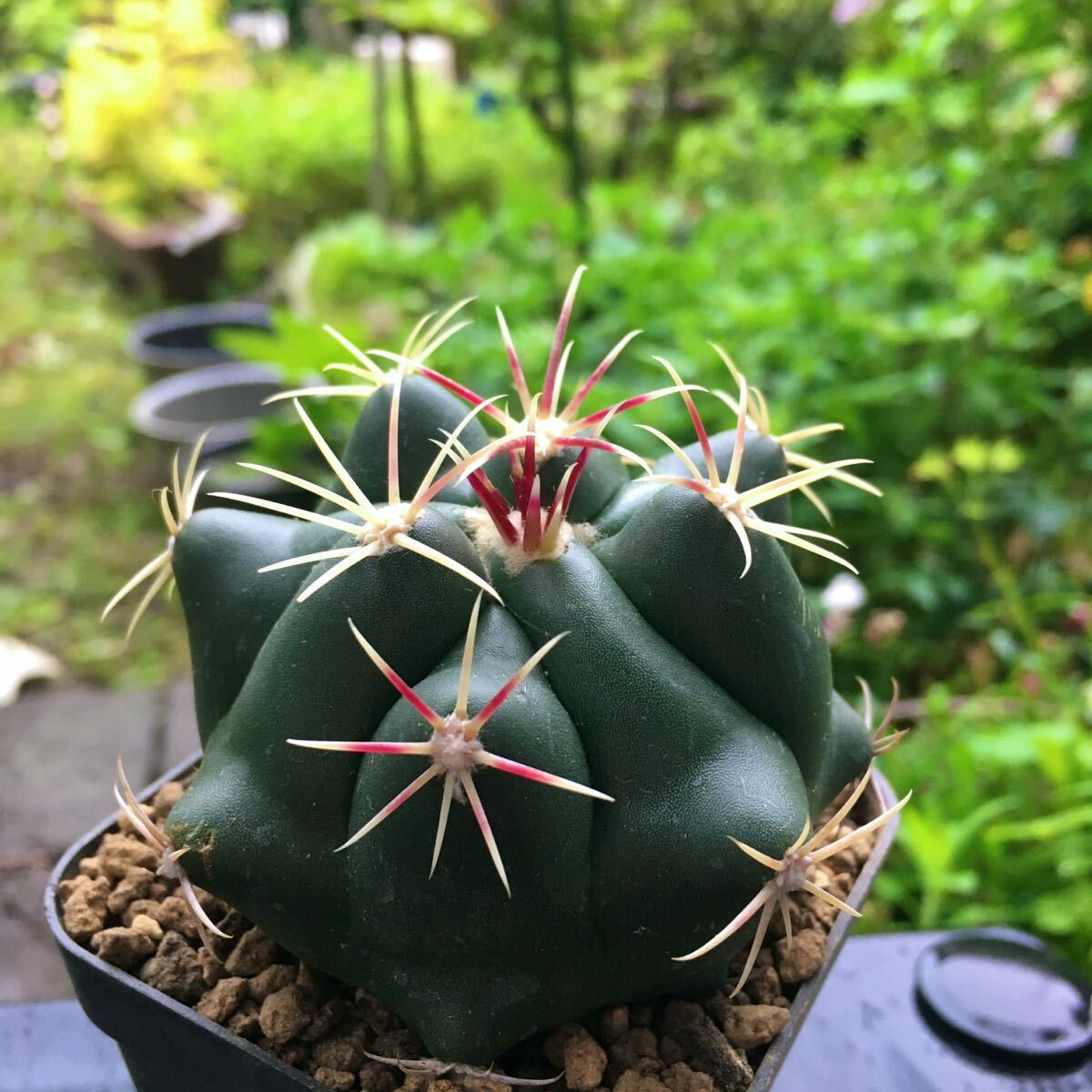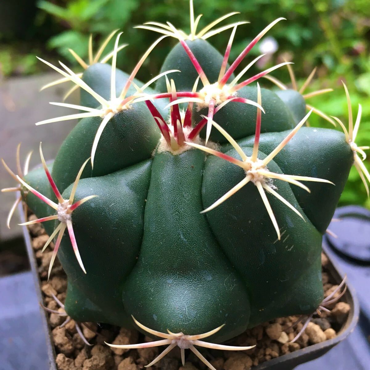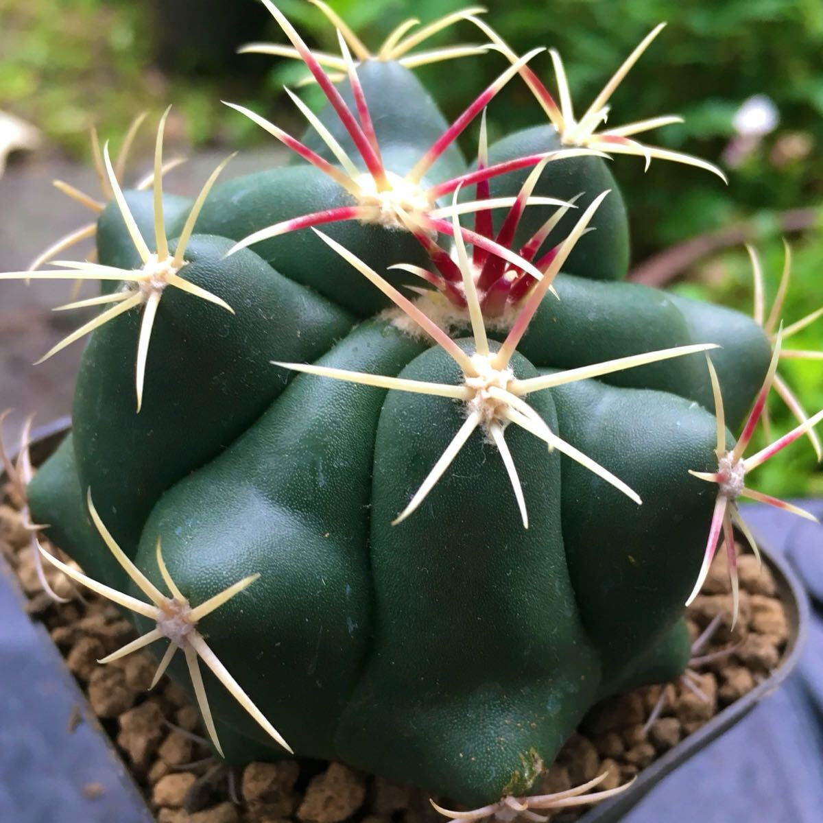 鮮やかな赤と黄色のグラデーションの棘は花火のように綺麗で、深い緑のボディとのコントラストがとてもかっこいい品種です。