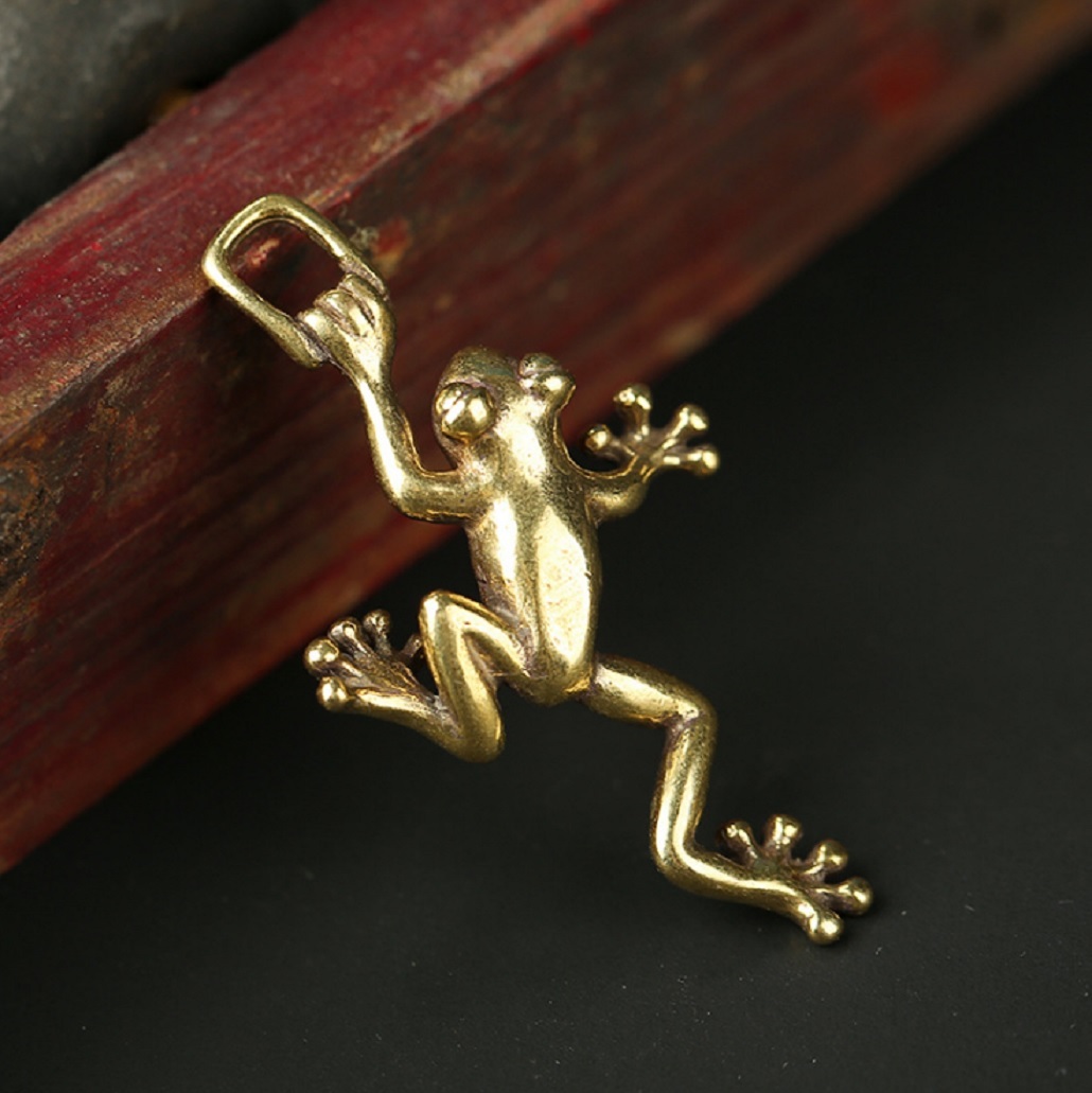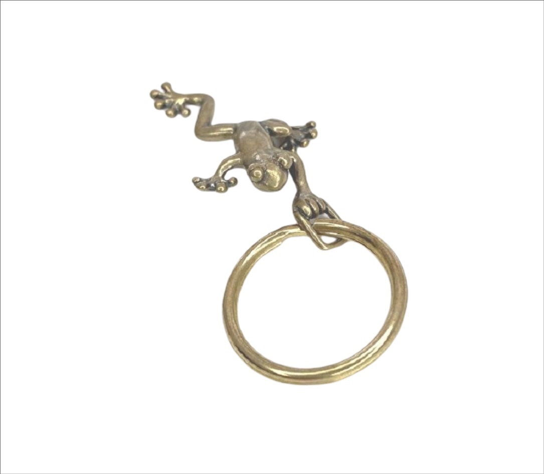 Brass 真鍮 ブラス 蛙 カエルのキーホルダー 無事に帰る お守り