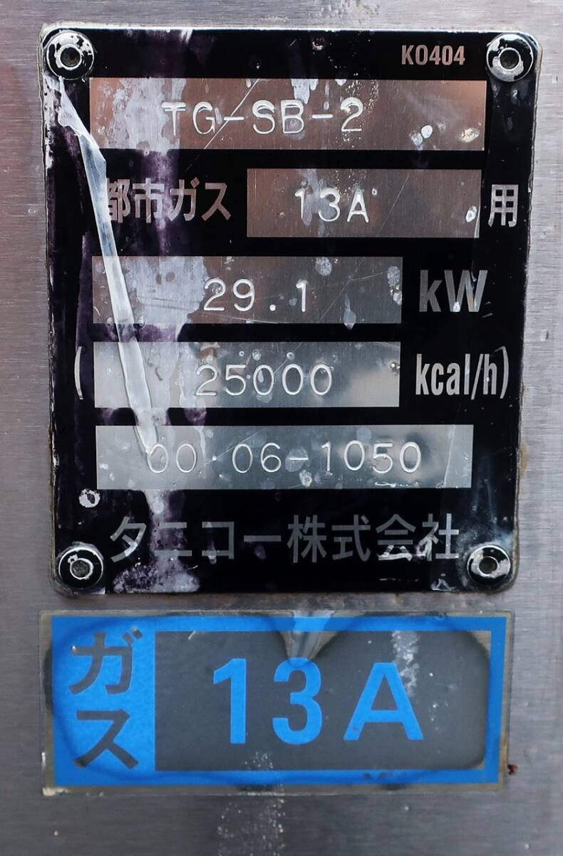 タニコー《パスタボイラー/ゆで麺機》TG-SB-2 都市ガス | |||