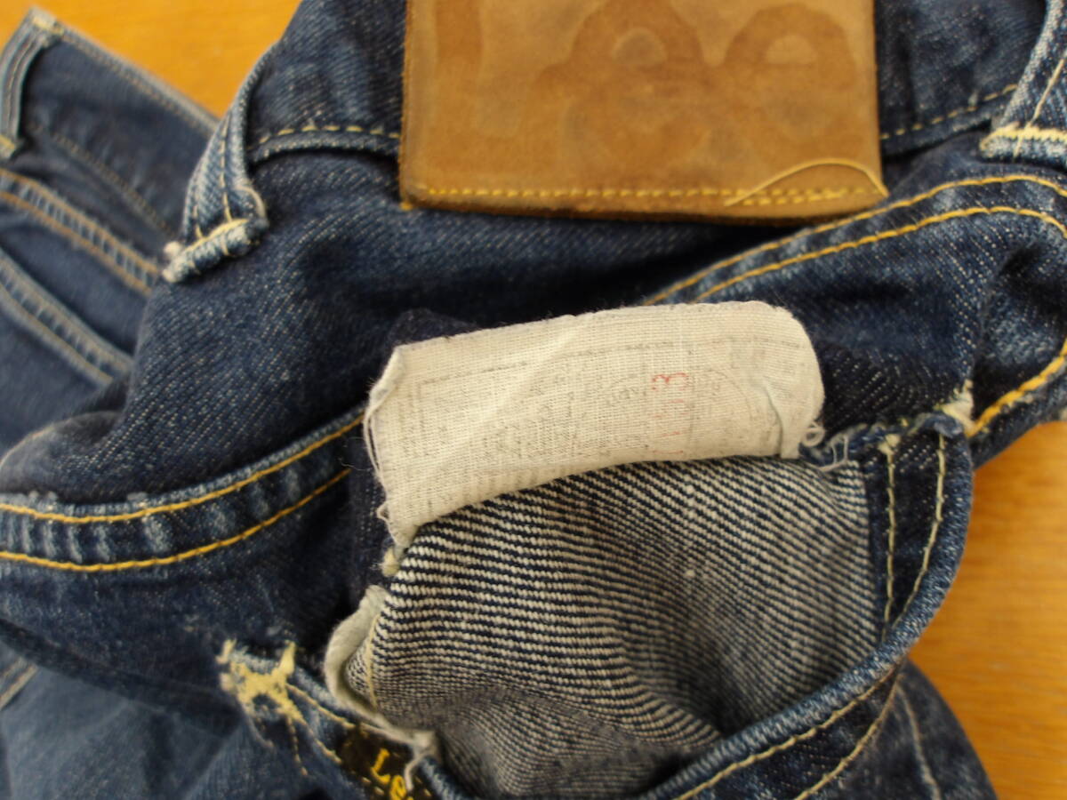 50年代のLee 101Z サイド黒タグモデルです。センター黒タグからサイドに切り替わった直後の黒タグです。GRIPPERのカムロックジッパーが採用されています。バックポケット内側に当て布とユニオンチケットがございます。サイズ表記なしSANFORIZEDの文字のみの初期モデル、バックポケットのピスネームはRMR表記なし、珍しい両耳というディテールです。主観で70%以上黒々としたインディゴが残った極上のコンディションです。Leeは古着市場では90年代から球数が少ないことで有名なのでお勧めです。
