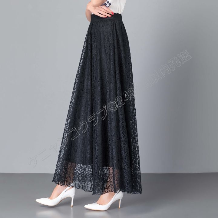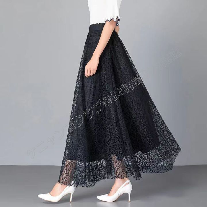 社交ダンス レーススカート ロング丈 ブラック 練習着 M~Lサイズ
