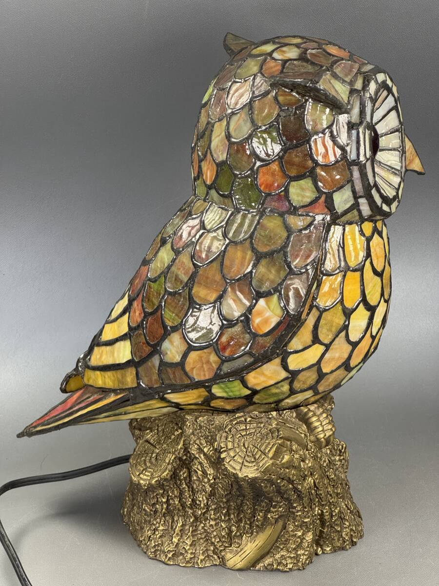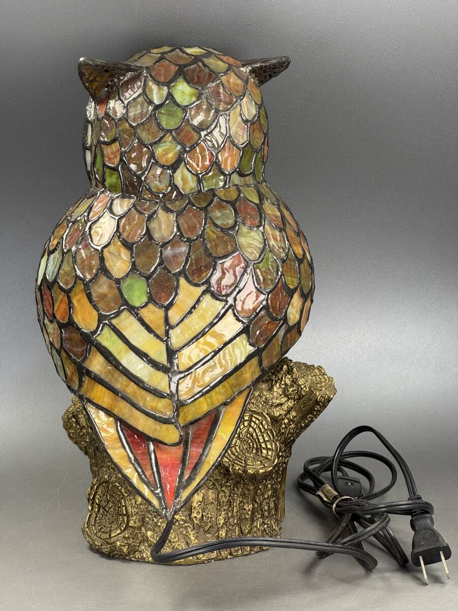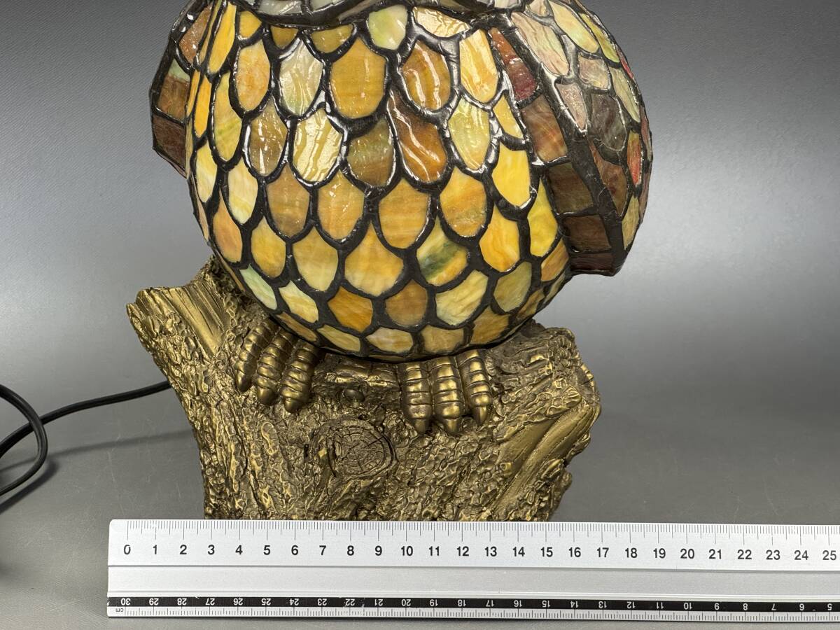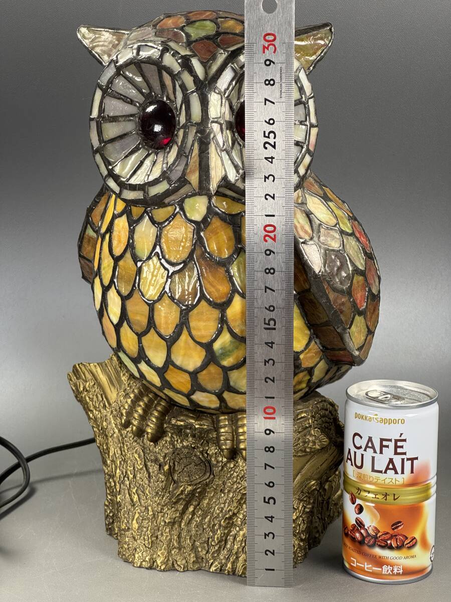 【偲】卓上照明 希少ステンドグラス フクロウ 梟 ふくろうランプスタンド 動作確認済 高さ約32㌢ 昭和アンティーク オシャレ レトロ r-616