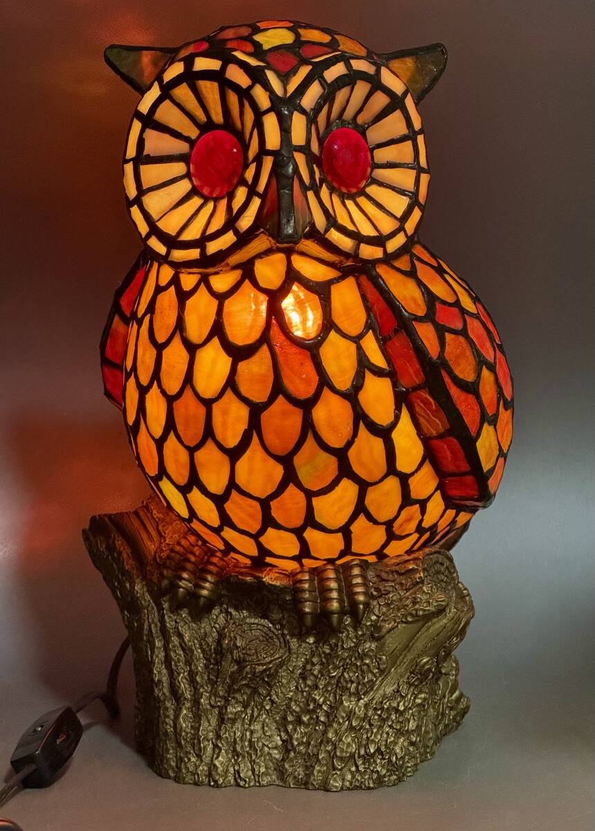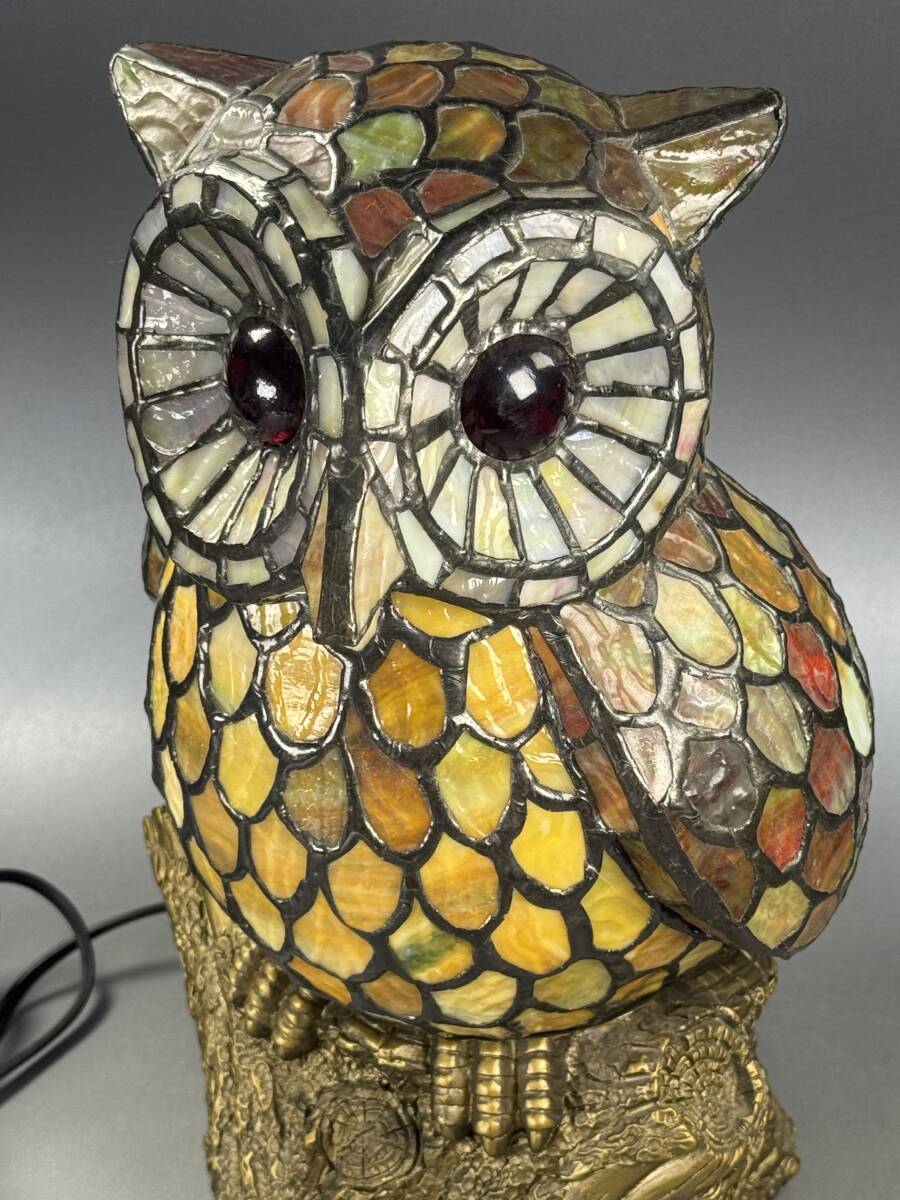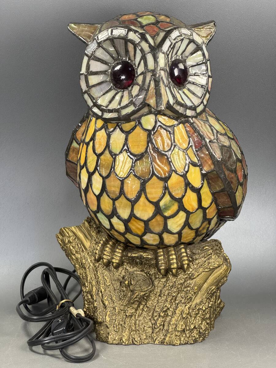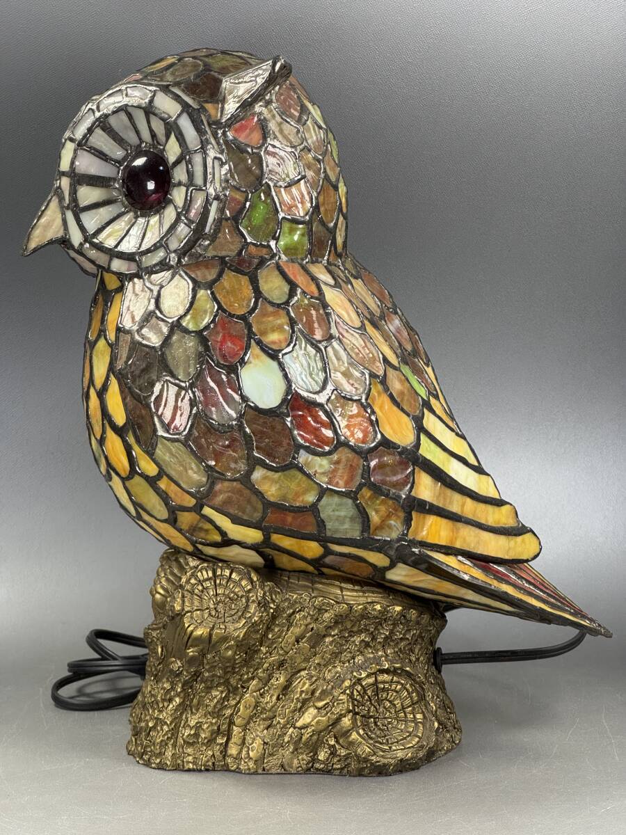 【偲】卓上照明 希少ステンドグラス フクロウ 梟 ふくろうランプスタンド 動作確認済 高さ約32㌢ 昭和アンティーク オシャレ レトロ r-616