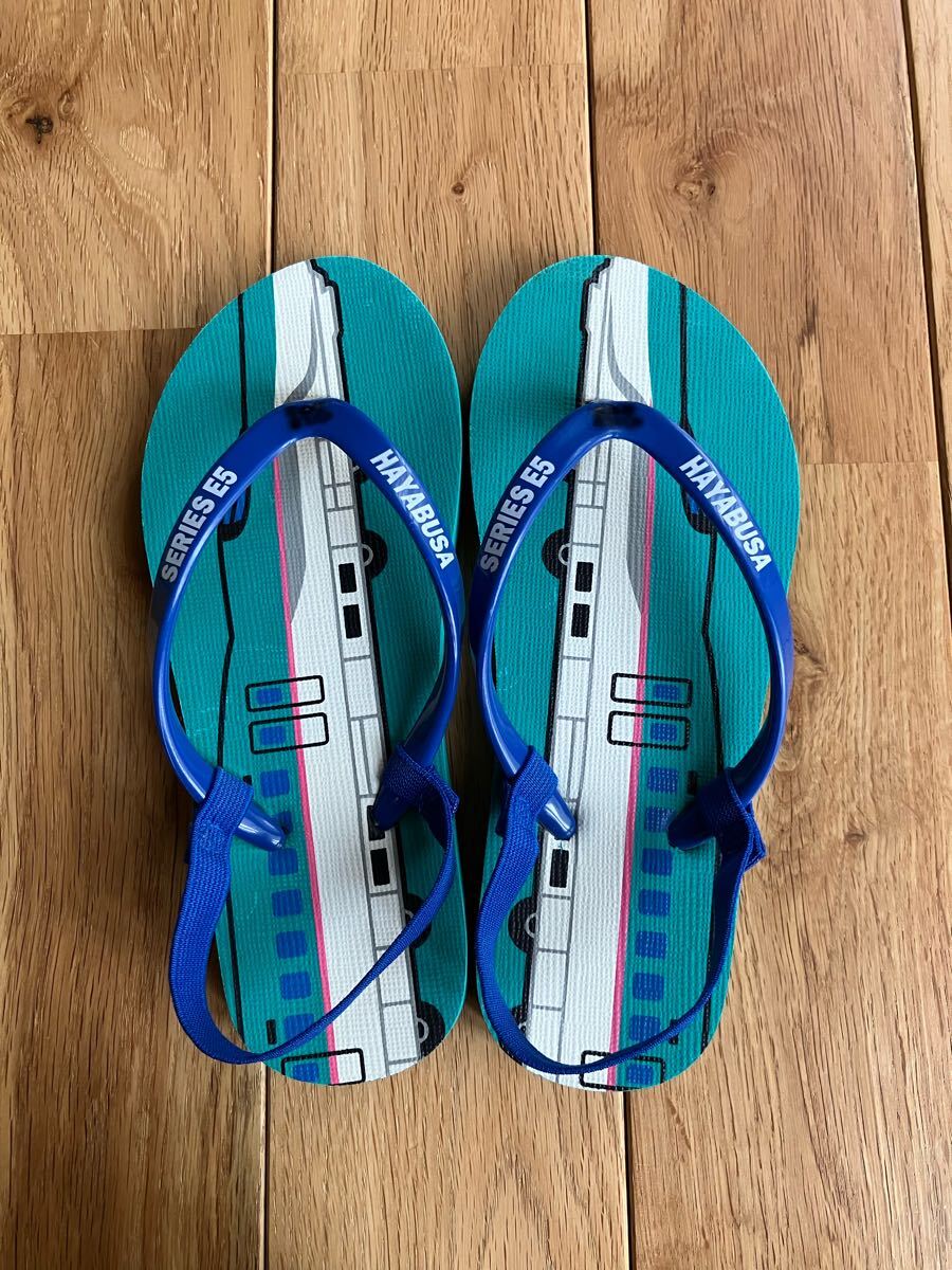 中古 新幹線 はやぶさ 男の子 キッズ サンダル 18 19 グリーン ※記名跡あり