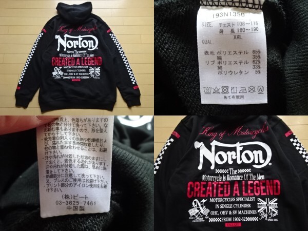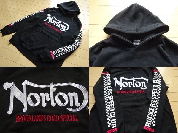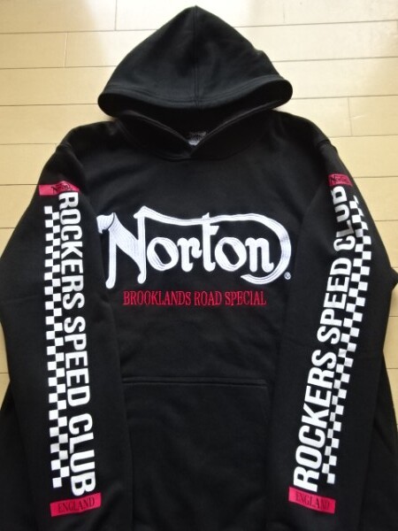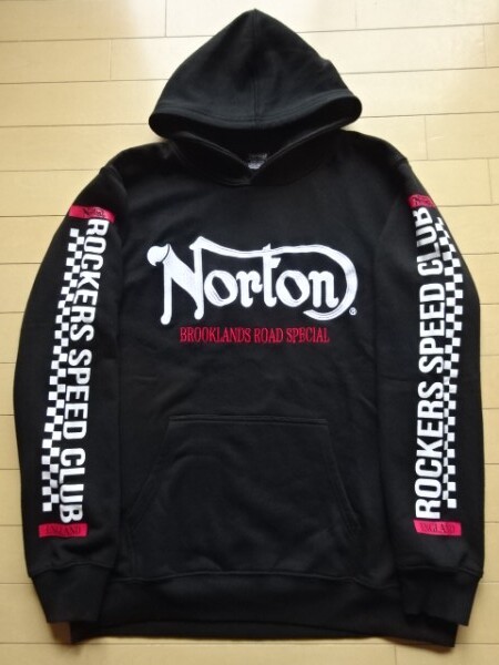 美中古品【Norton】刺繍ロゴ入り スウェットパーカー ブラック SIZE:XXL (ノートン,バイカー,カフェレーサー)