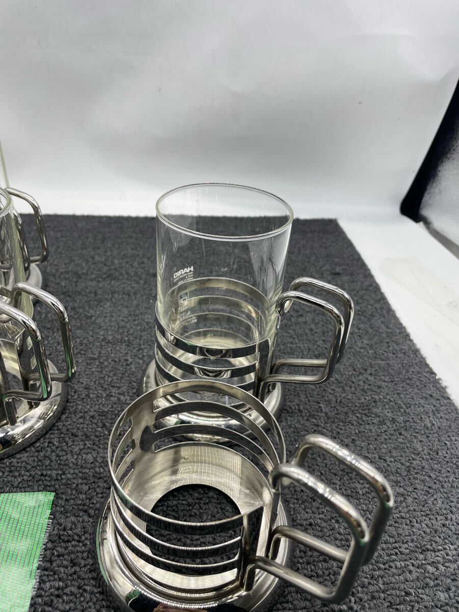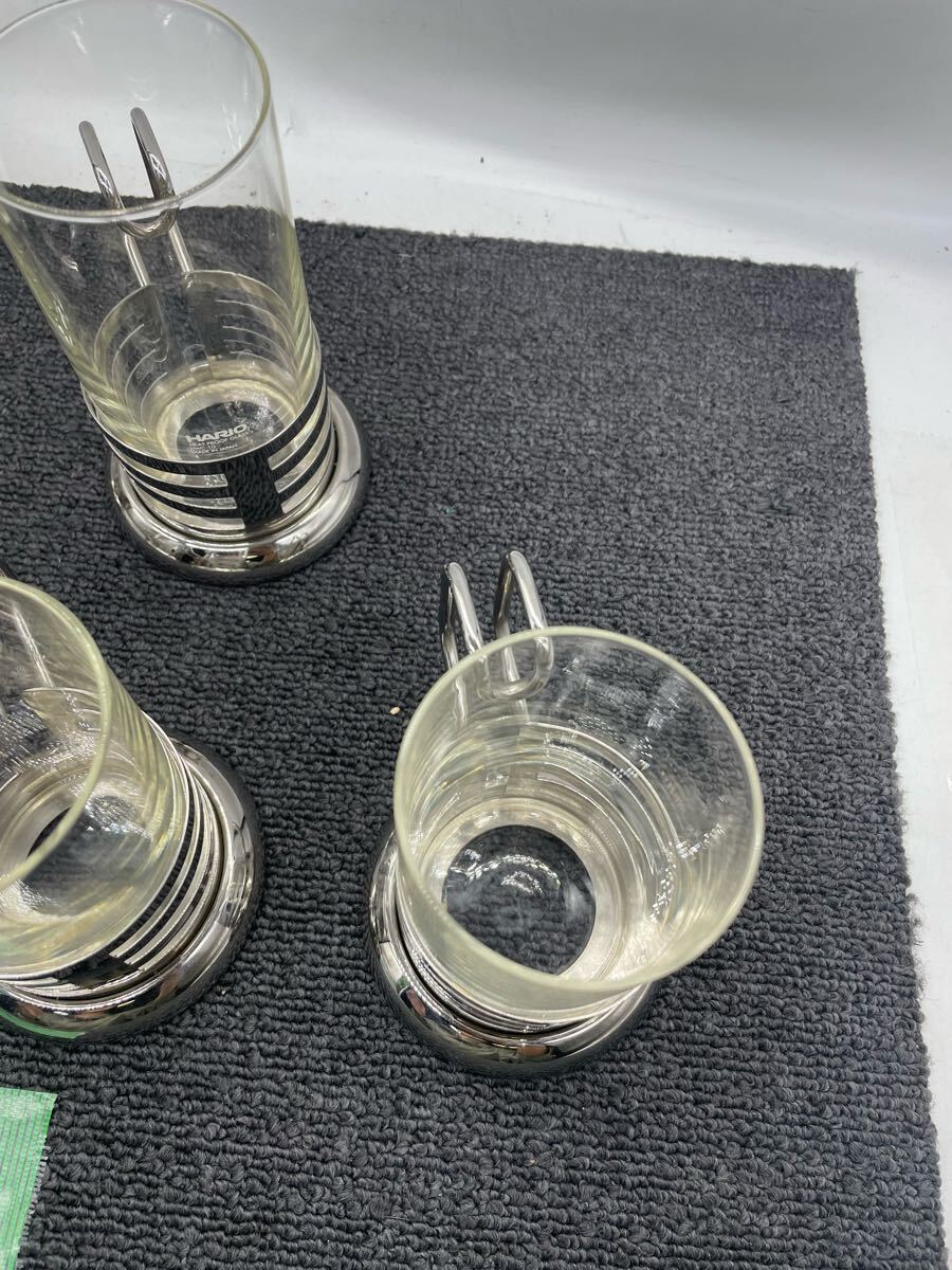 * 特徴:耐熱ガラス製で、ホットでもアイスでも使用可能です。熱い飲み物を入れた際に持ちやすいよう、ステンレス製のホルダーが付いています。