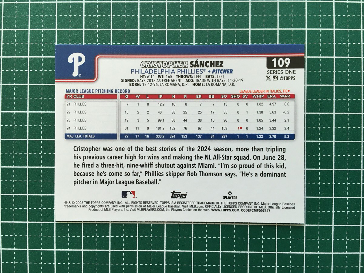 ★TOPPS MLB 2025 SERIES 1 #109 CRISTOPHER SANCHEZ[PHILADELPHIA PHILLIES]ベースカード「BASE」★