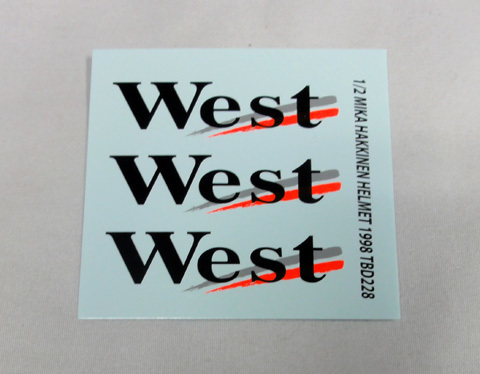 1998 マクラーレン・メルセデス ミカ・ハッキネン 1/2 ヘルメット用 West タバコデカールになります。