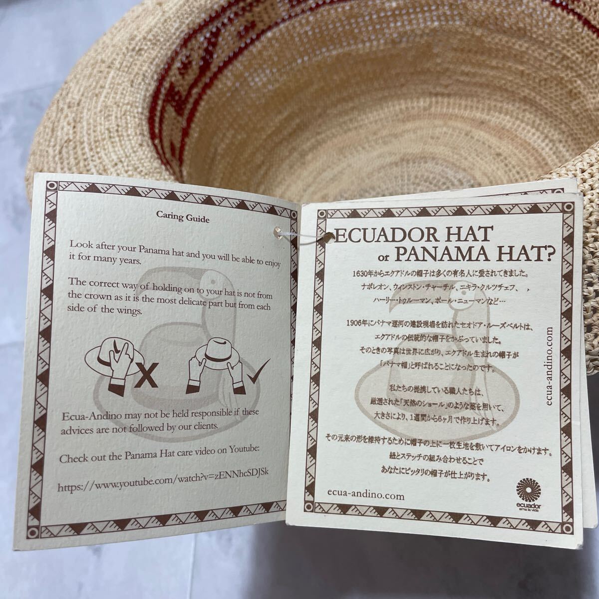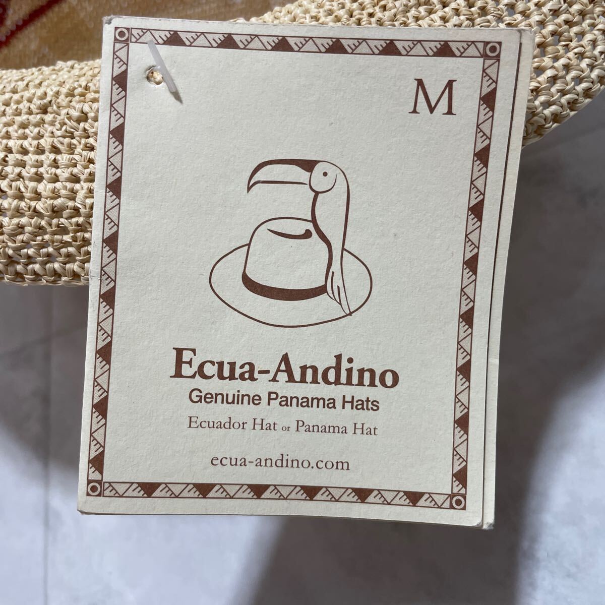 新品 Ecua-Andino エクアアンディーノ パナマハット麦わら帽子 エクアドル製 ハンドメイド カンカン帽 ベージュ サイズM 玉SS3724