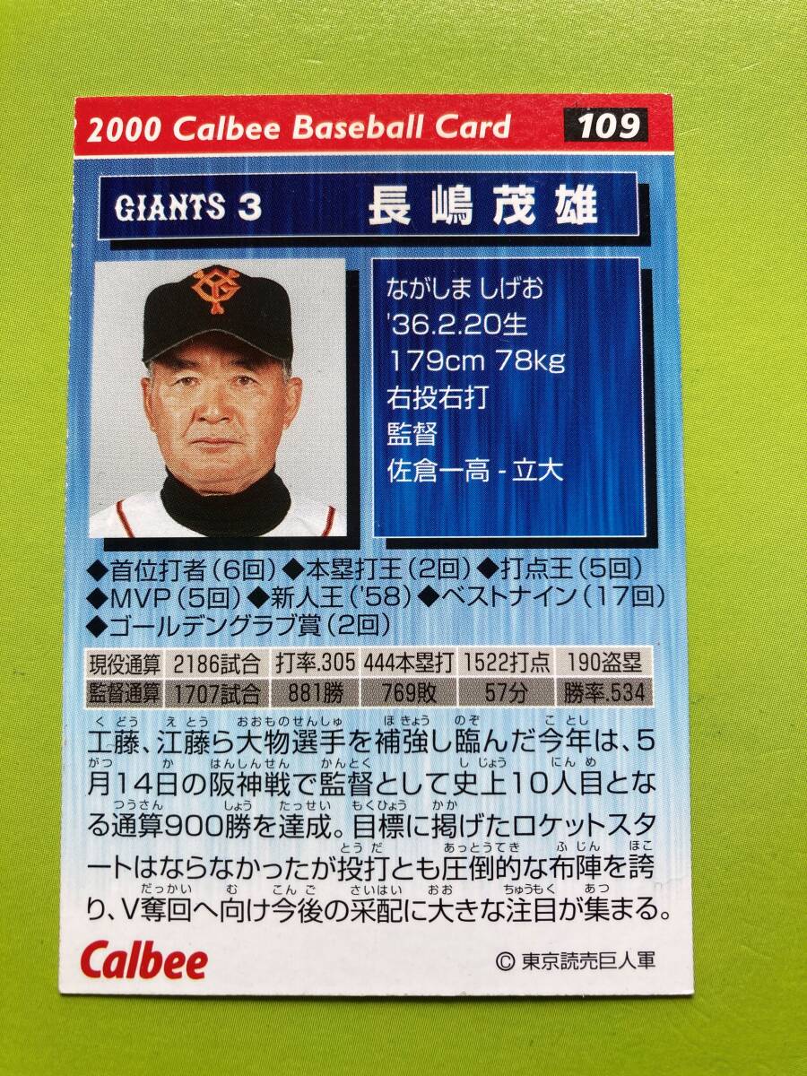 2000年 R-109 長嶋 茂雄(巨人)レギュラーカード 当時物 レジェンド 希少品 レア 終身名誉監督 カルビー プロ野球チップス 即決 送料無料