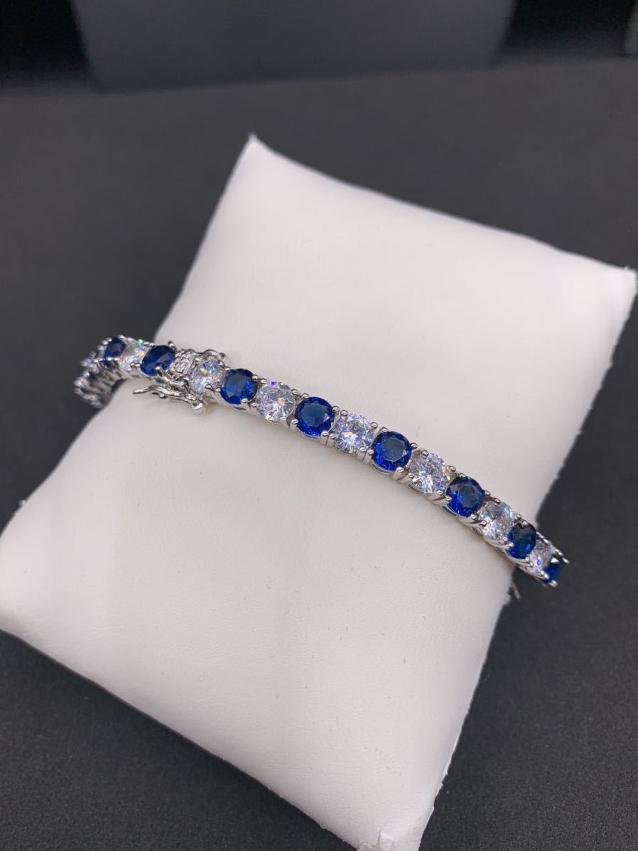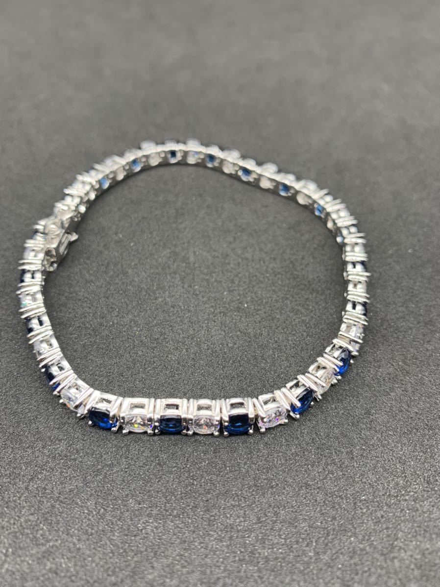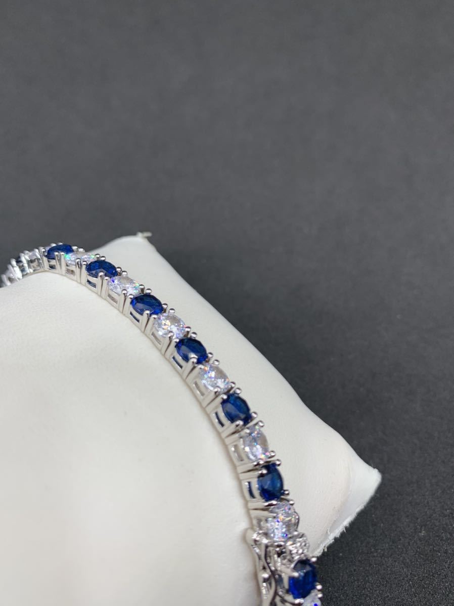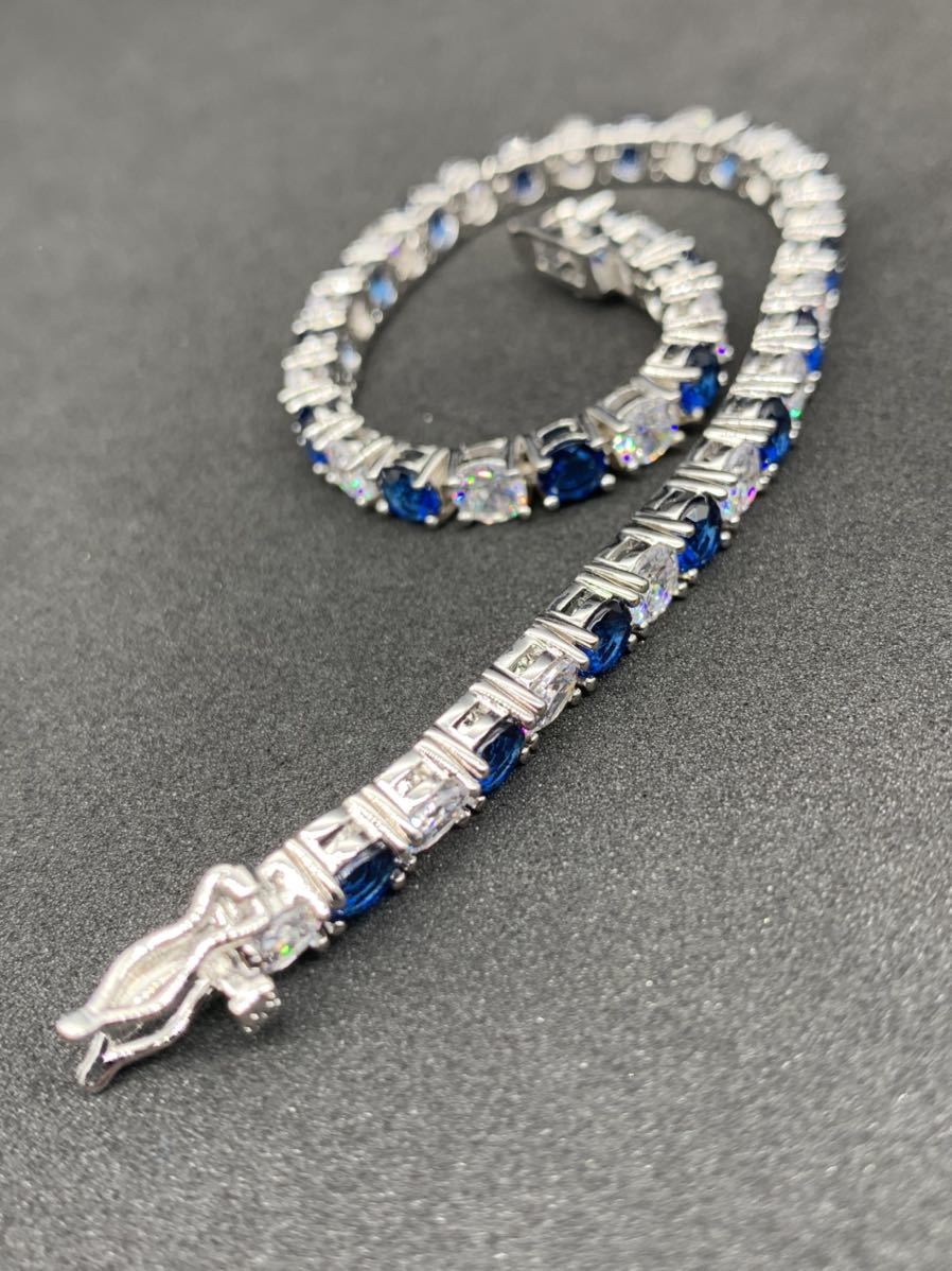 爽やかな ブルーとホワイトのダブルカラー CZ ダイヤ テニスチェーン ネックレス です。