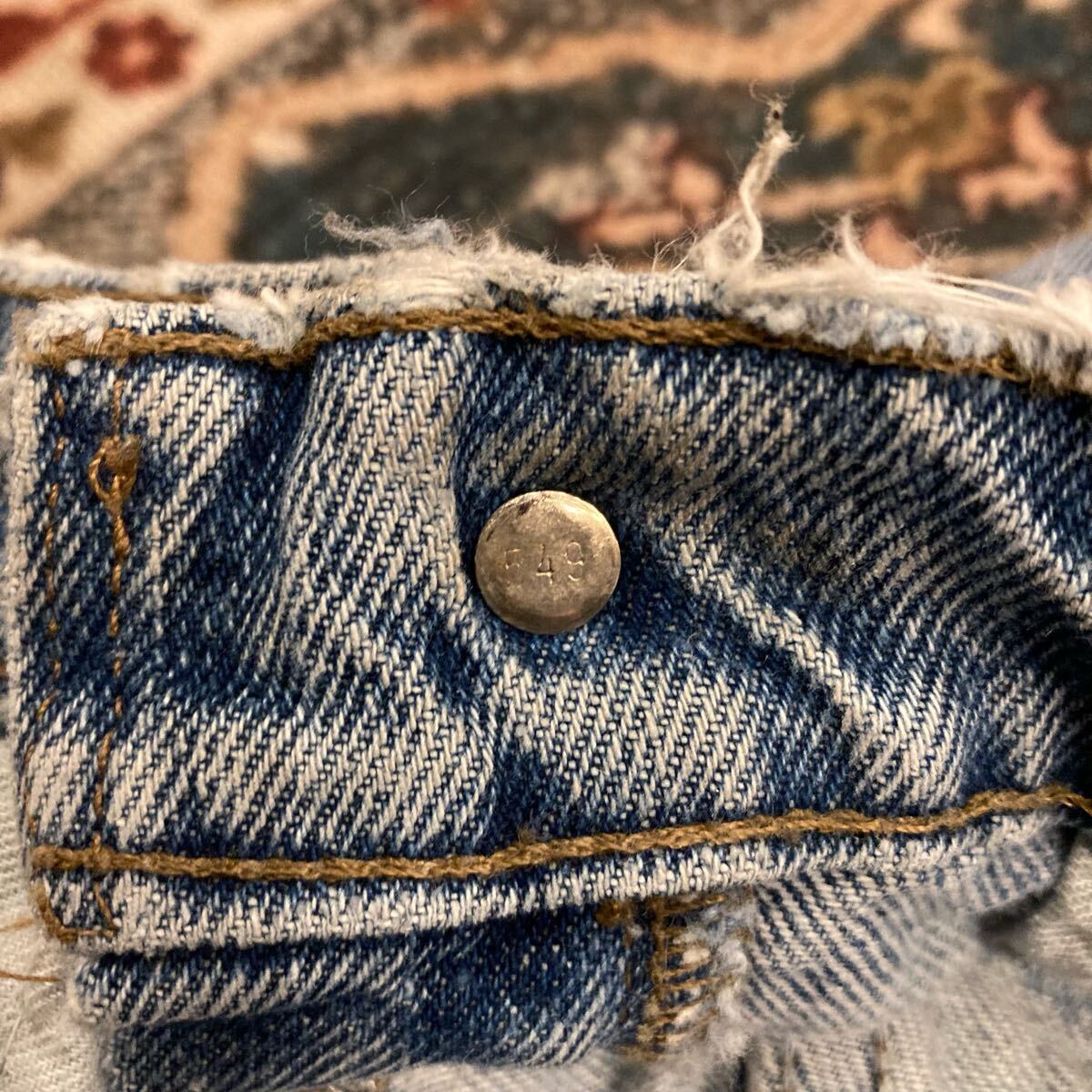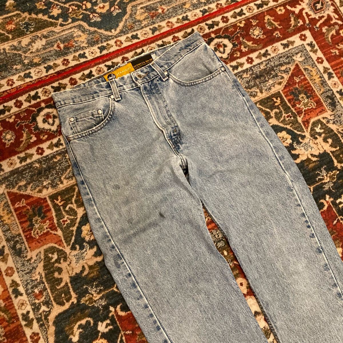 コンディション : ウエスト腰回り、裾にダメージがございます。右前腿に汚れがございます。右後ろ脹脛辺りにリペア跡がございますが、着用に問題あるダメージはございません。