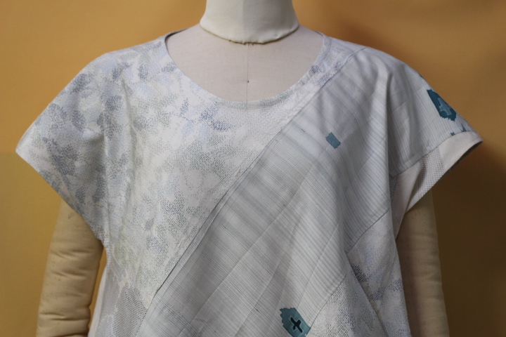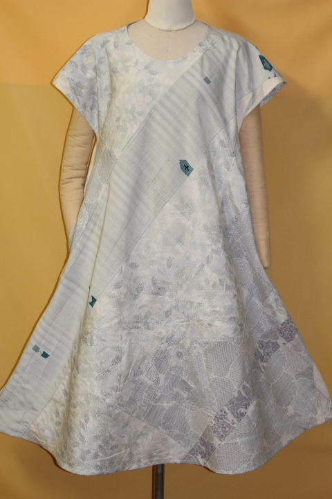 ブルー系紬コンビから出来ましたドレープドレスです。