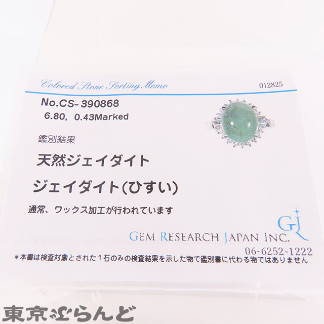 ヒスイ リング 翡翠 6.80ct D0.43ct 16号相当