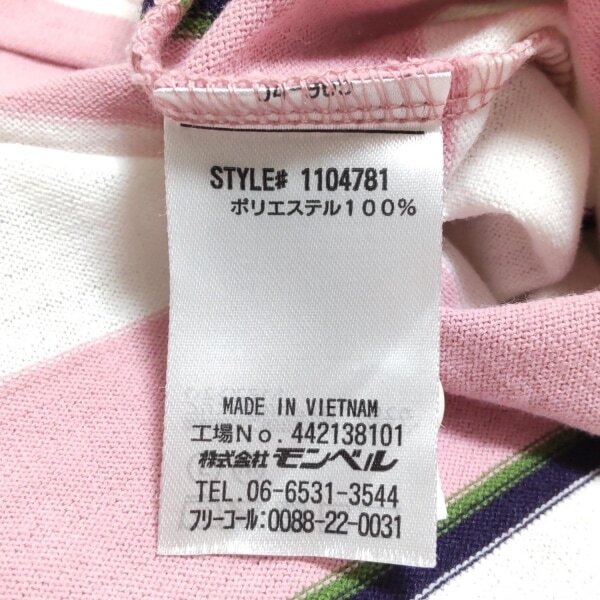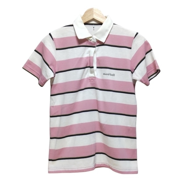 モンベル mont-bell 半袖ポロシャツ サイズS 白×ピンク×マルチ レディース ボーダー トップス