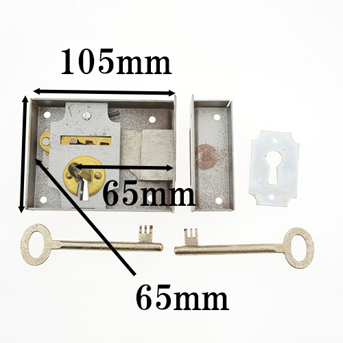 | 商品サイズ・状態 | ・本体ケースのサイズは幅105mm、高さ65mmです。 ・ピンサイズはフェイスプレートから65mmになります。 ・サイズ画像を参照ください。 (フロントロックから中央の鍵穴までを測定したものです。) ・ストライクプレート(ラッチ受け・かんぬき)、キー2つ、キープレートがセットになっています。 ・このビルトインロックは左右の扉で使用できます。 |