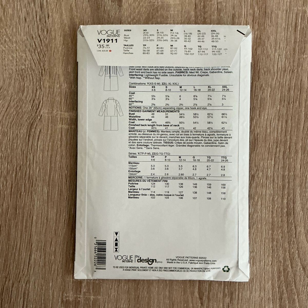 ヴォーグパターンズのギ・ラロッシュのコートの型紙です。