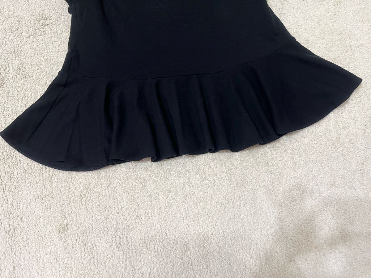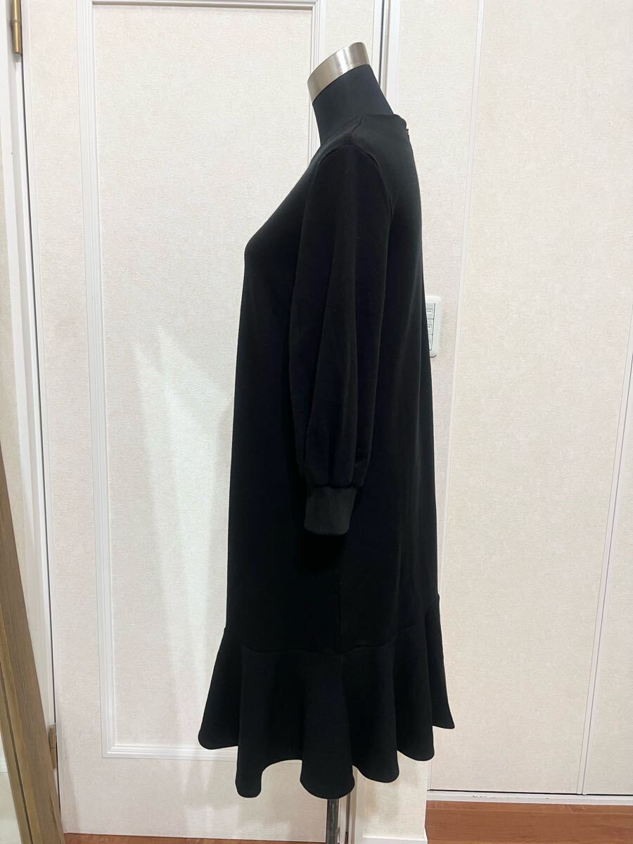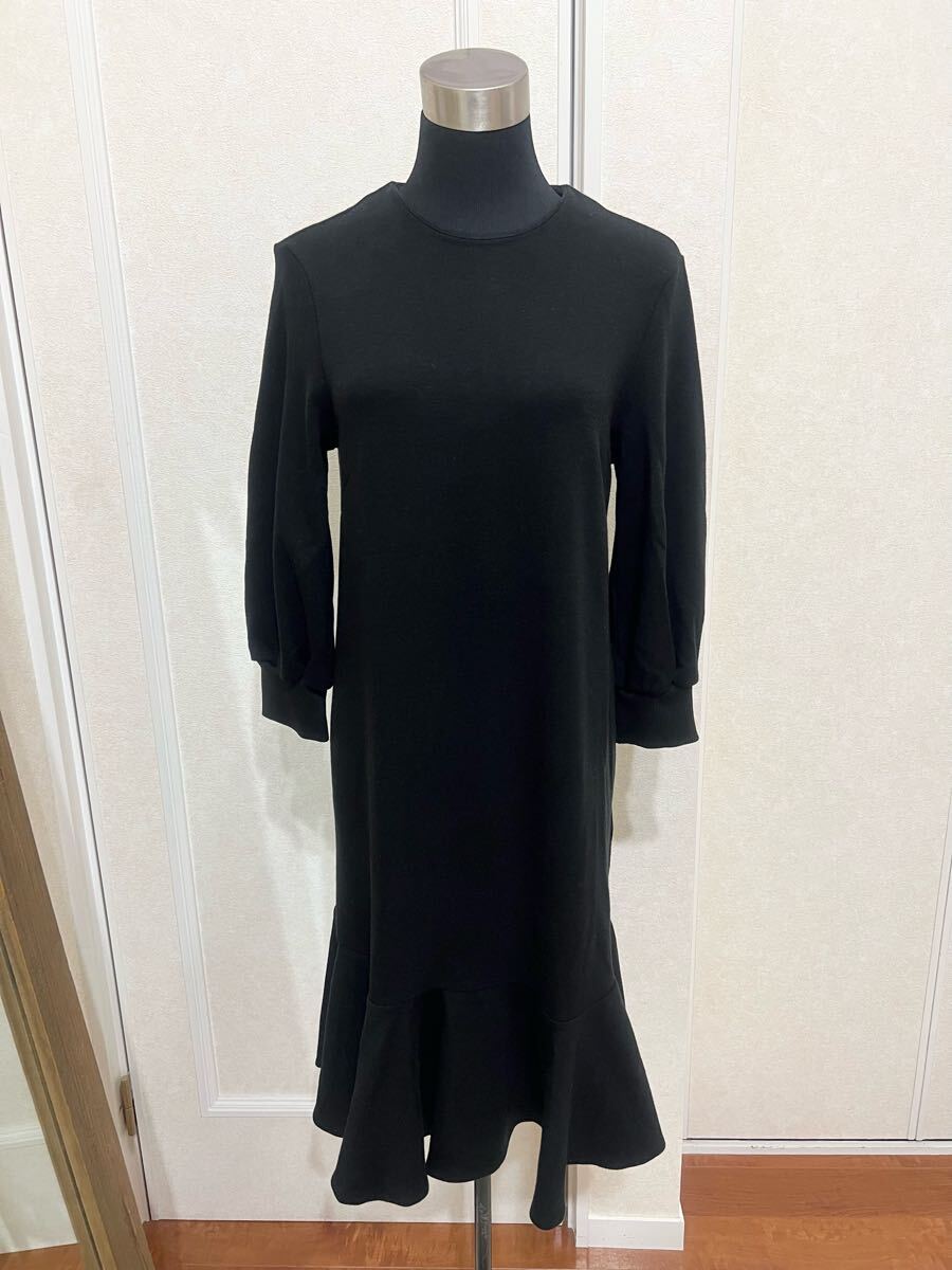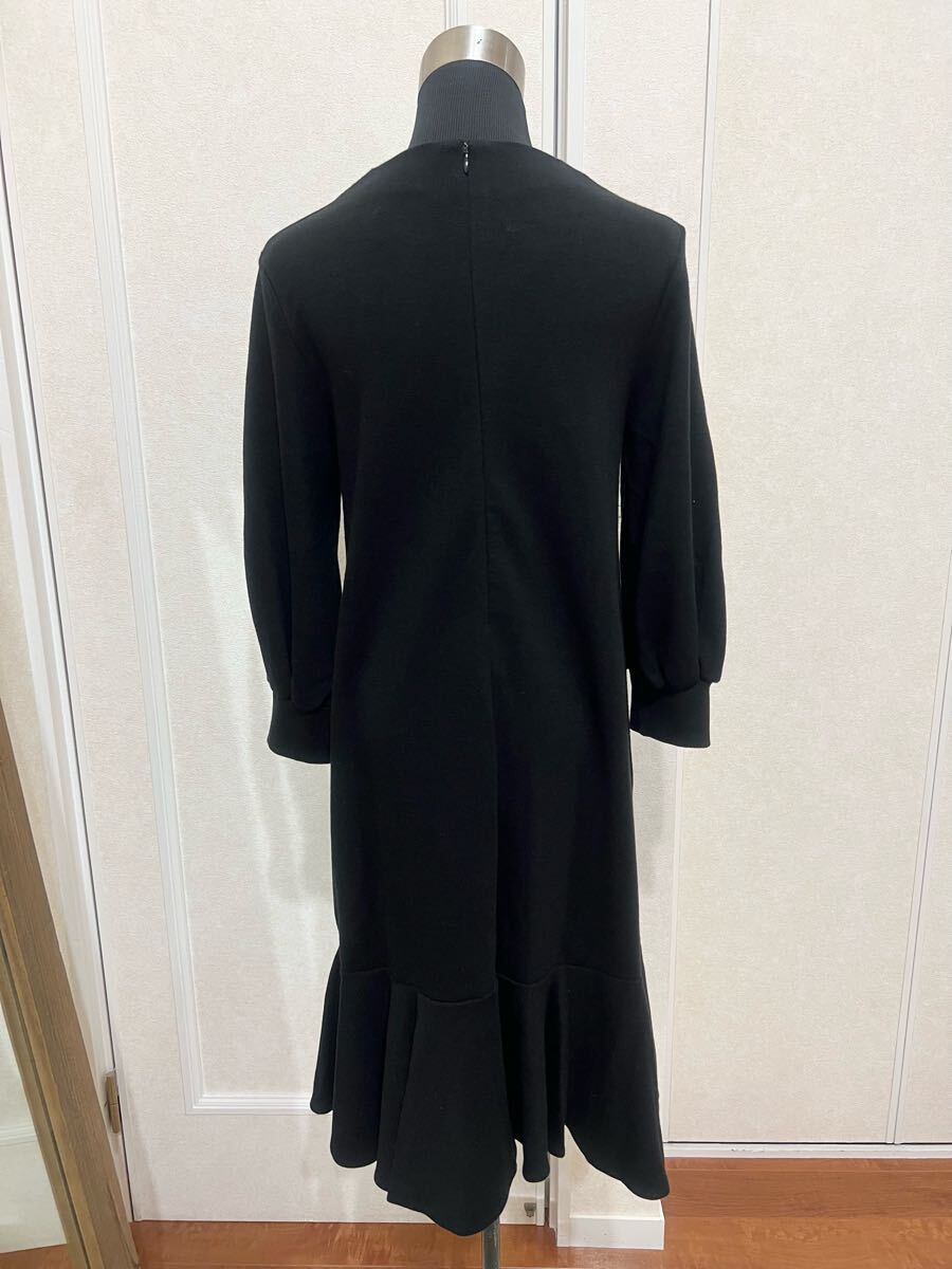◆ワンピース後ろ側部分はホックありのファスナー仕様ですので着脱しやすく、お裾部分は、ひかえめなフリル調デザインでシンプルながらも女性らしさのございますワンピースになります。