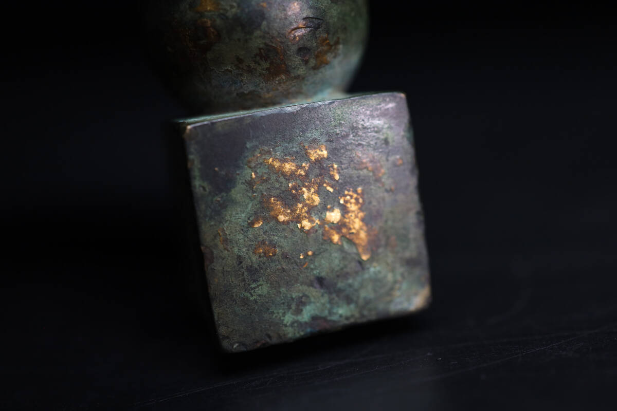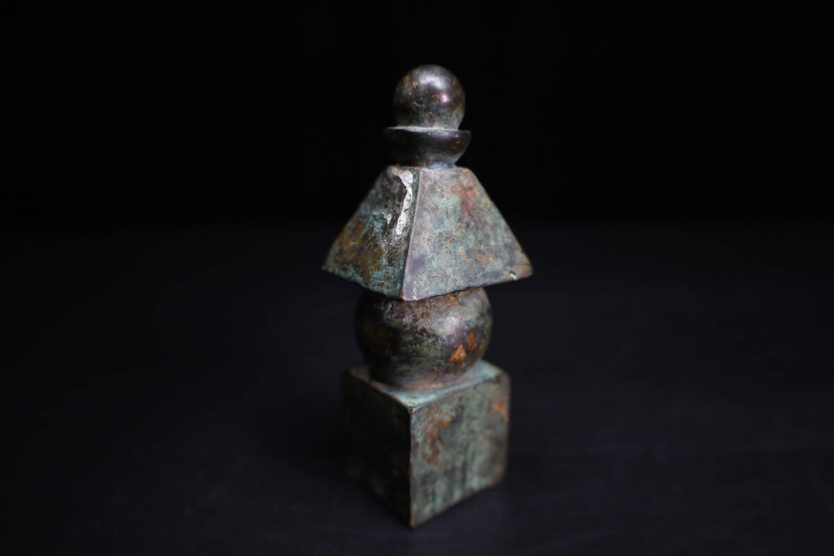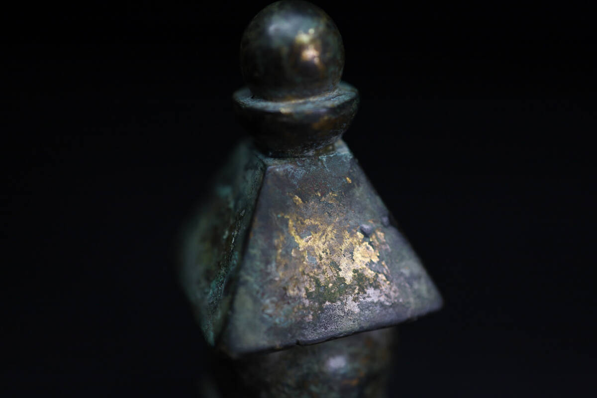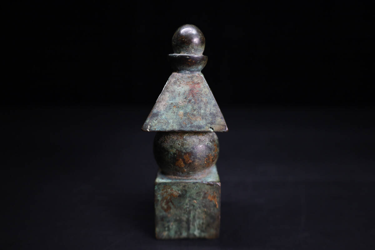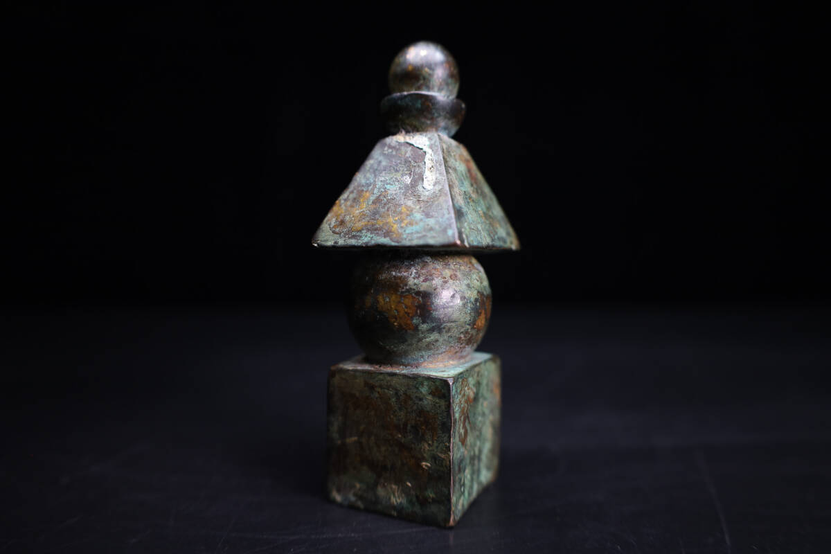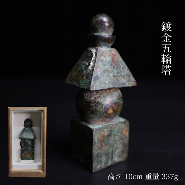 ◇雅◇ 時代物 仏教美術 鎌倉期 鍍金五輪塔 高さ10cm/337g 銅鍍金 五輪塔 銅製五輪塔 銅佛塔 置物 箱付 /HK.25.5 [J111] UP
