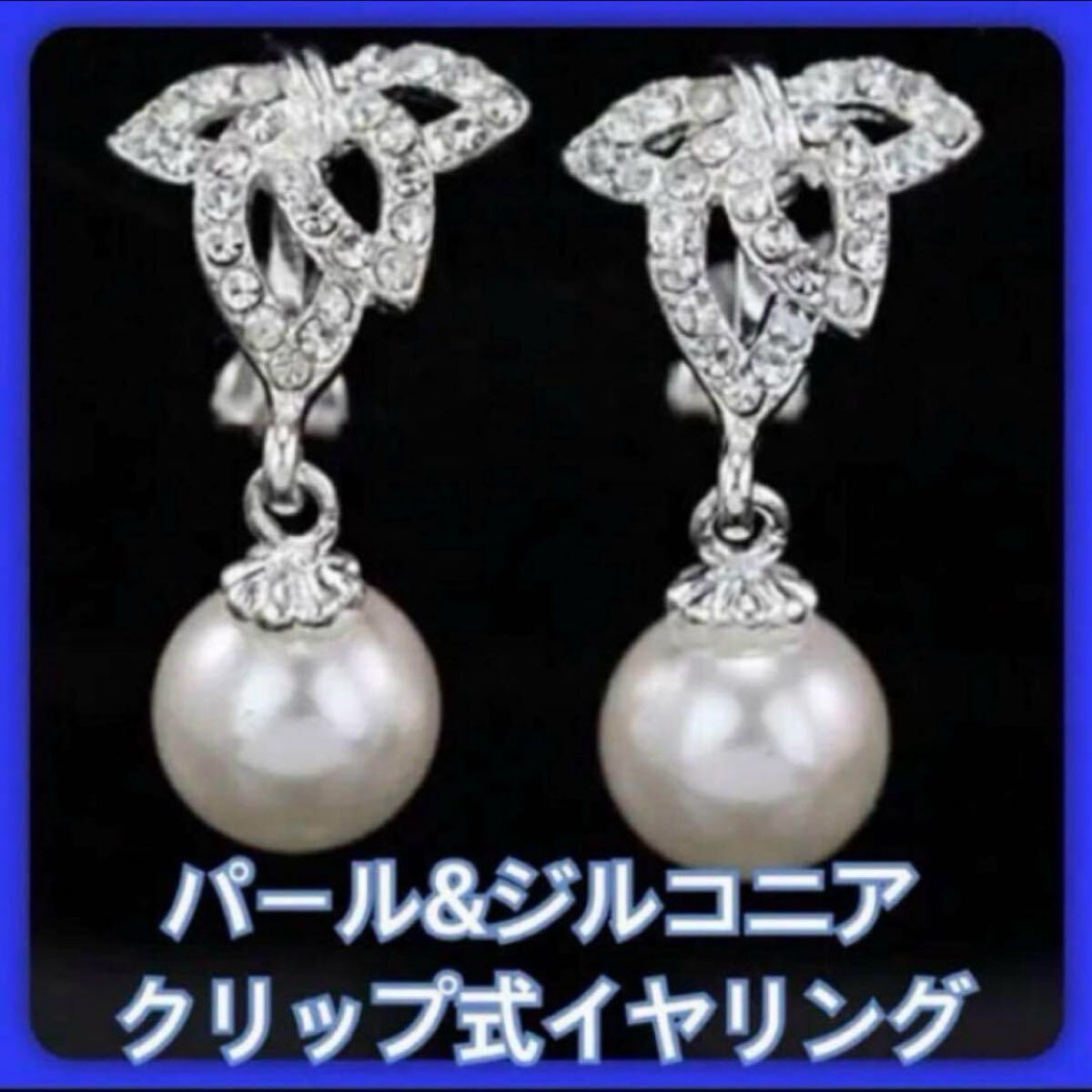 イヤリング クリップイヤリング クリップ式 パール 真珠 ジルコニア キラキラ 揺れる エレガント アクセサリー フェイクパール