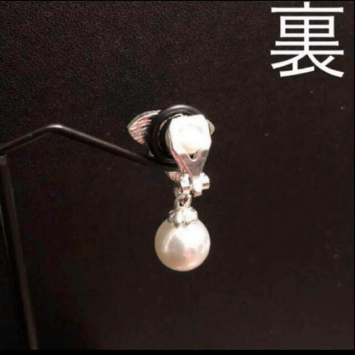 揺れる ジルコニア シルバー パール 真珠 クリップ イヤリング
