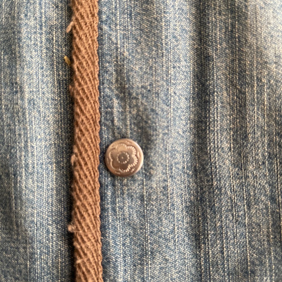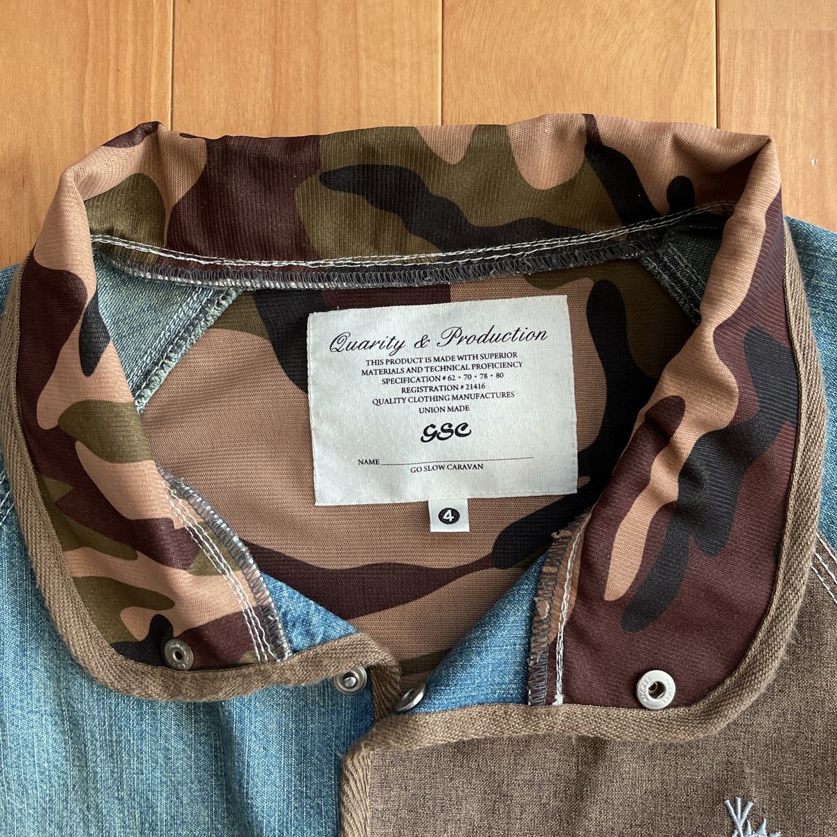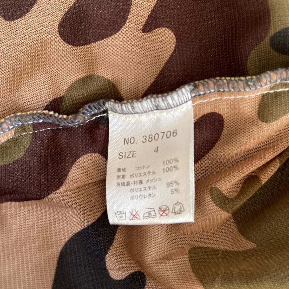 結構使用しましたので、かなり使用感あります。色ももう少し濃かったと思いますので、色落ちしています。全体的にうっすら汚れていますが、左右の袖の裏側、肘のあたりが特に汚れています。 表地がコットン100%になります。柔らかくて薄い生地ですので、秋口に最適かと思います。フロントはボタンになっています。胸元のポケットもボタンです。両サイドのポケットはジップになっていますので閉じることも可能です。裏地が迷彩になっていますので、ボタンを留めなければ、ちらっと見せることができます。表地の淵や胸元のあたりはこげ茶色になっています。サイズの表記が4になっており、大体Lぐらいかなと思います。 実寸は、 着丈:71cm 身幅:56cm 袖丈(ラグランなので襟元から採寸しました):80.5cm 平置きにての素人採寸ですので、多少の誤差はご了承ください。以上、よろしくお願いいたします。