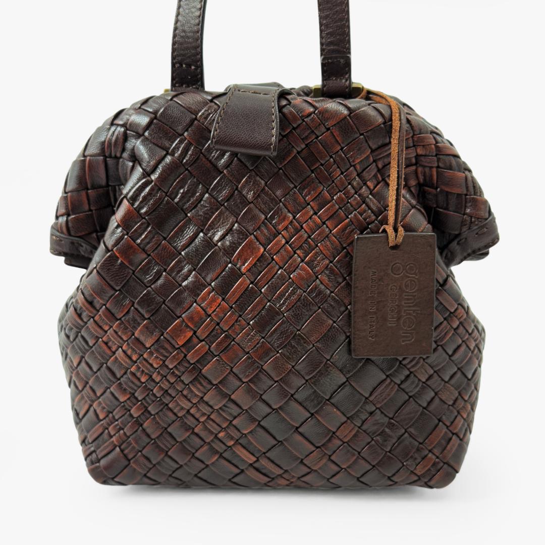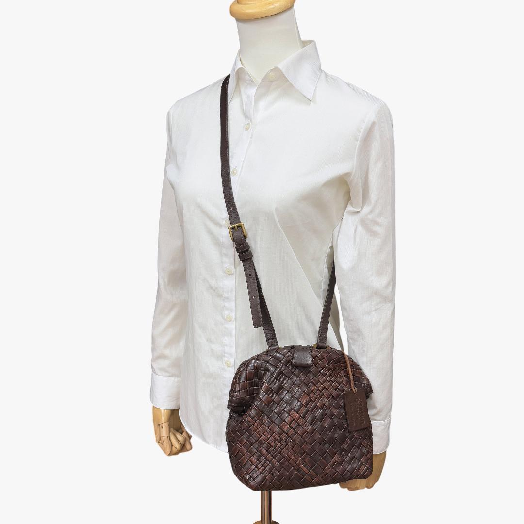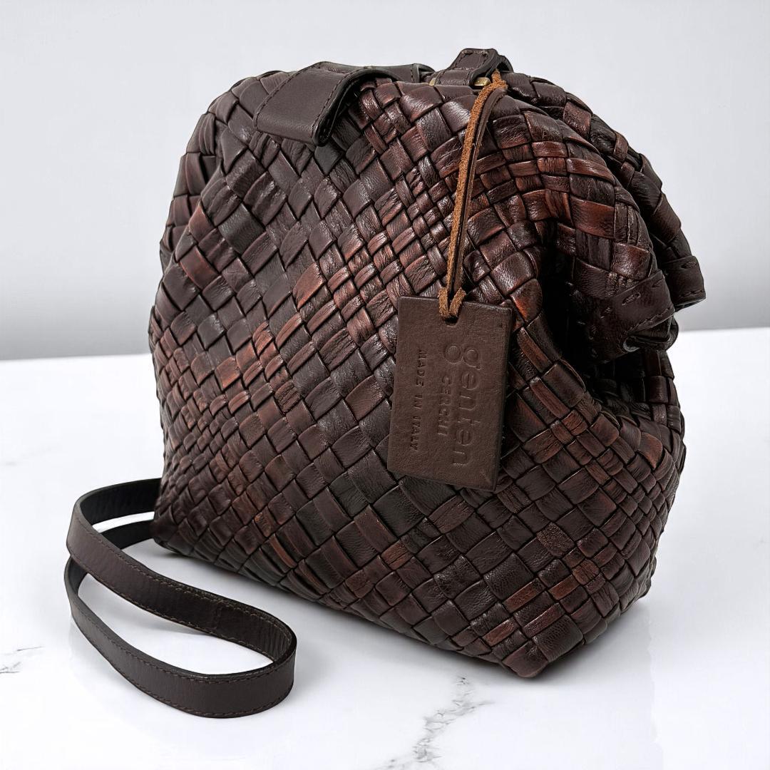 【極美品】 ゲンテン genten ミニショルダー ミニバッグ ショルダーバッグ がま口 ラストリコ メッシュ 編み込み こげ茶 ダークブラウン