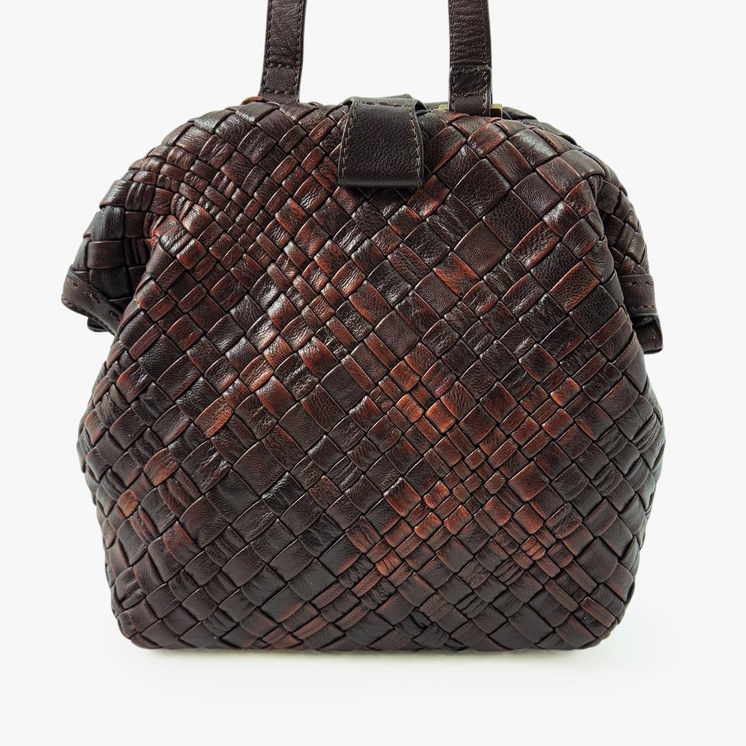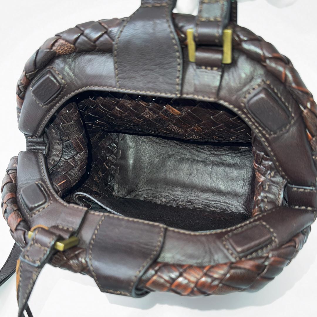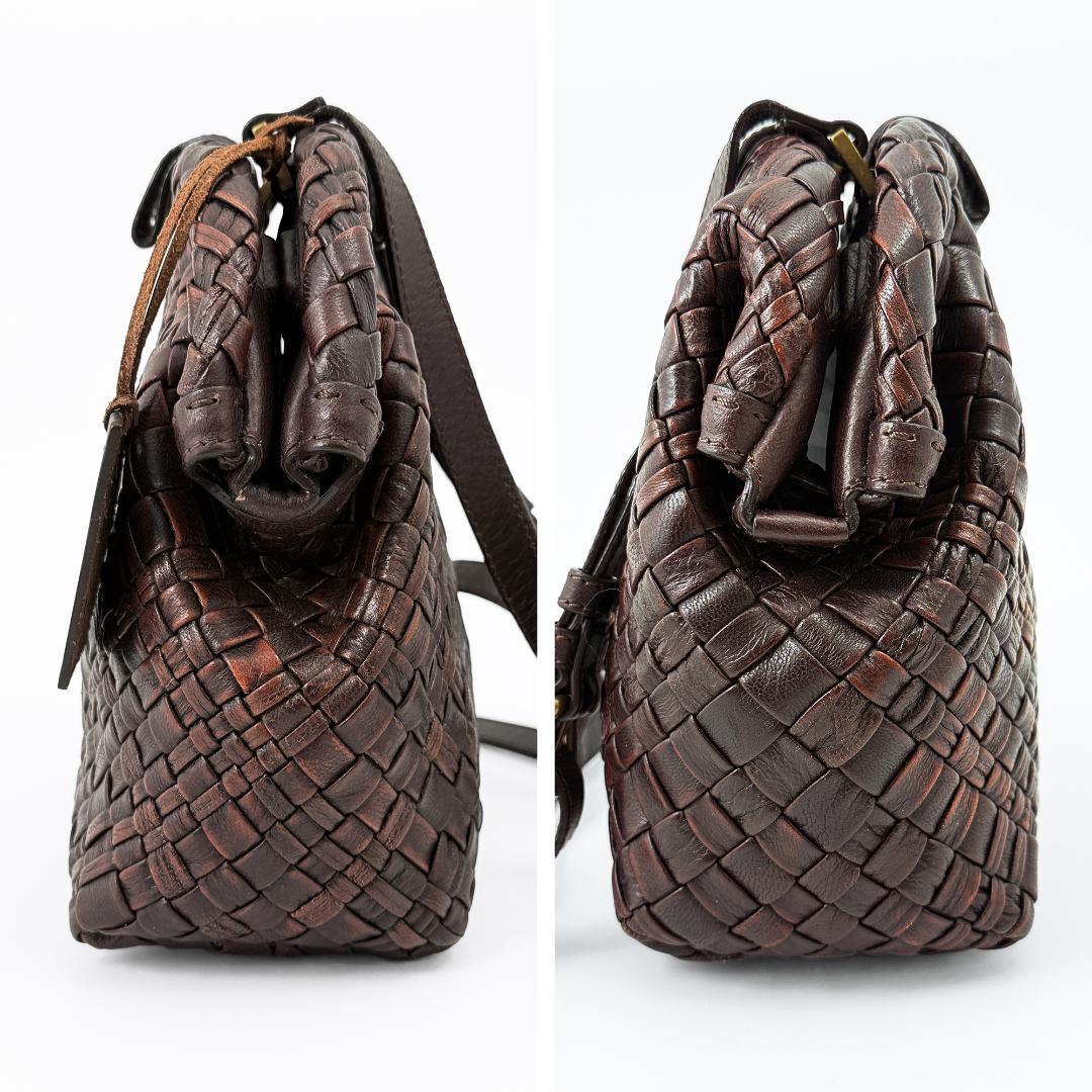 【極美品】 ゲンテン genten ミニショルダー ミニバッグ ショルダーバッグ がま口 ラストリコ メッシュ 編み込み こげ茶 ダークブラウン