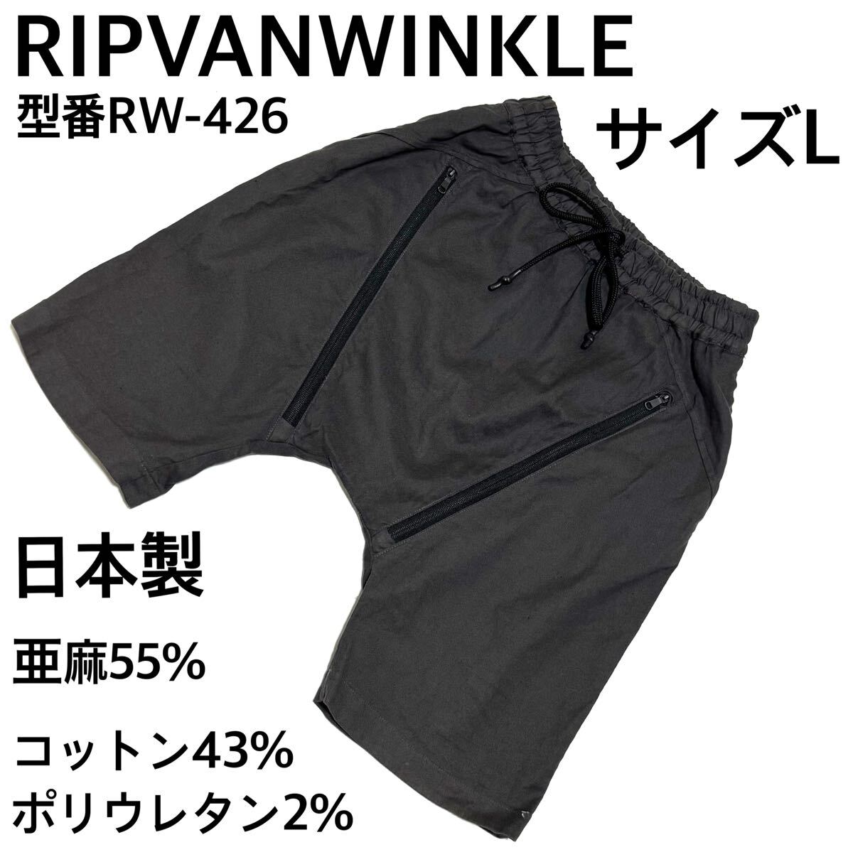 RIPVANWINKLEの日本製ショーツRW-426。上質な麻混素材(亜麻55%・コットン43%・ポリウレタン2%)で、ドローストリング&ジッパーポケット付きの機能的な一着。ストレッチ性も中程度で快適な履き心地。後面の切替デザインも個性的。夏のコーデに最適です。