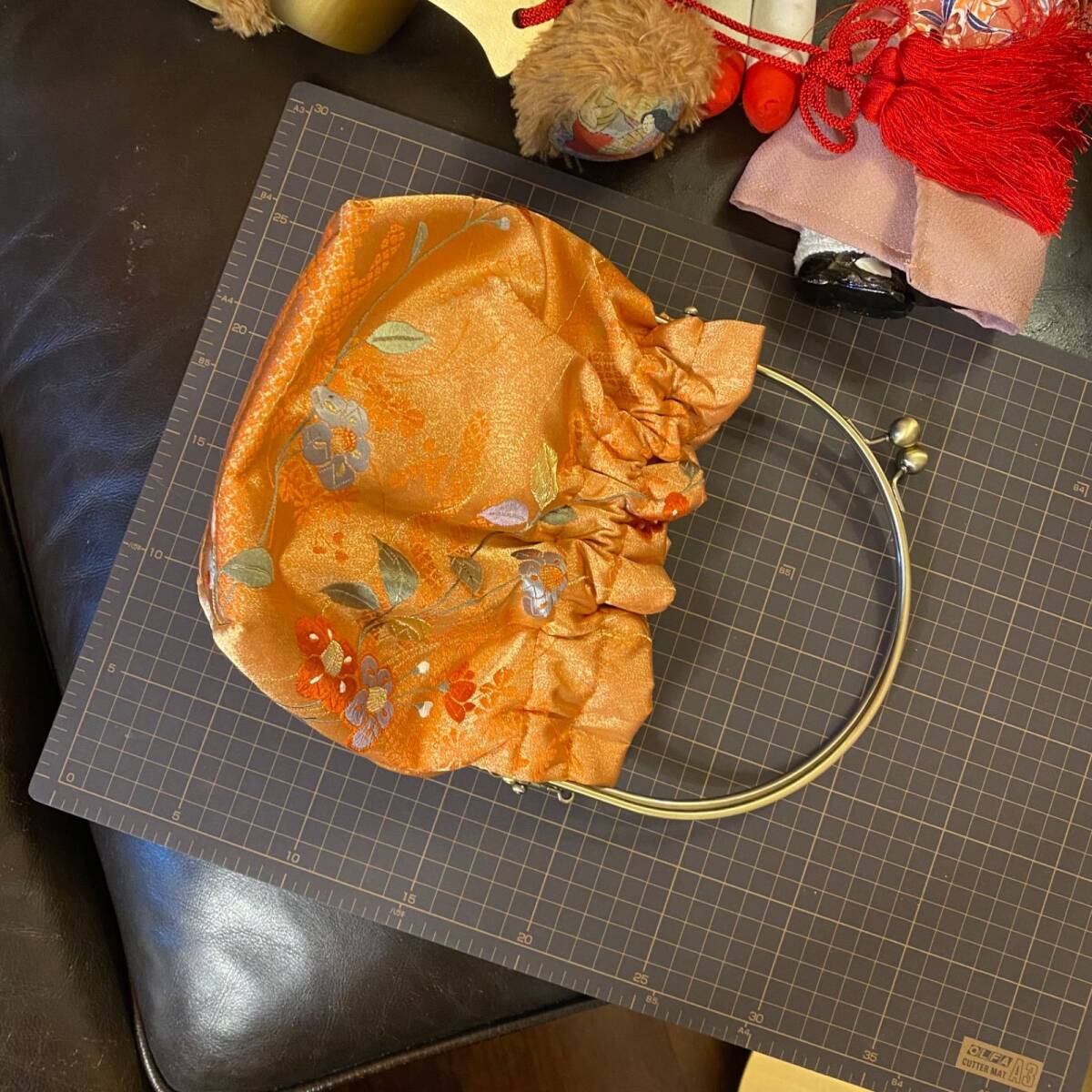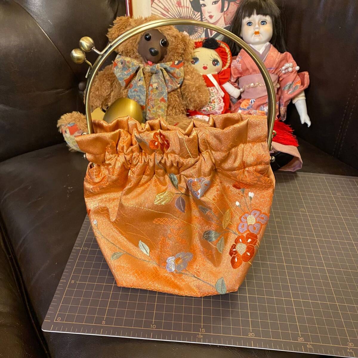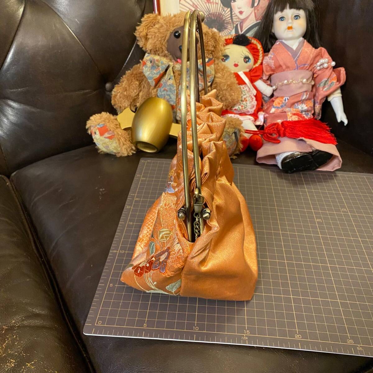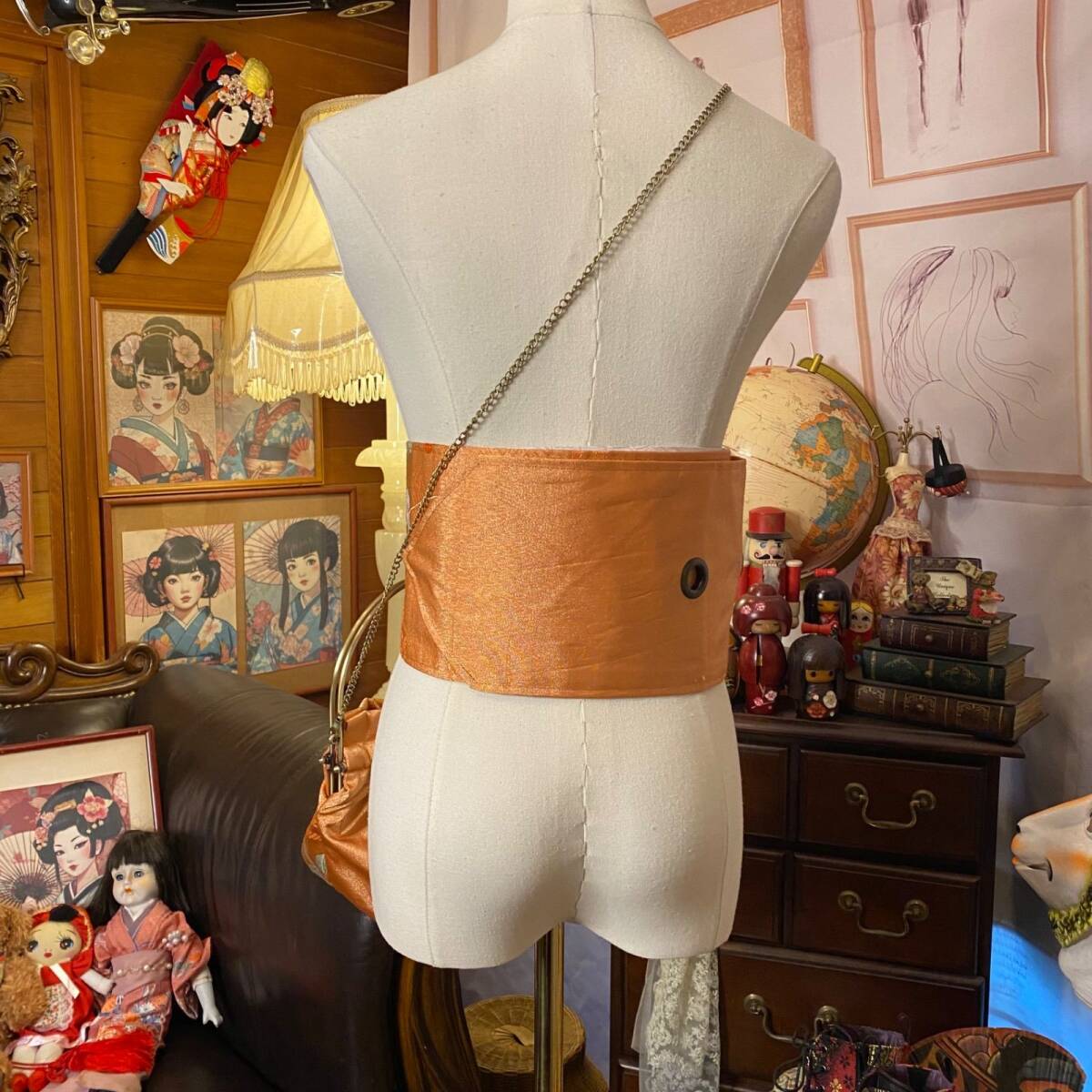 【和洋折衷 名古屋帯リメイク ハンドバッグ バック ショルダーチェーン付き ガマ口タイプ 帯サッシュベルト セット 陽ざしを抱き、掌でとろける。あ-106】