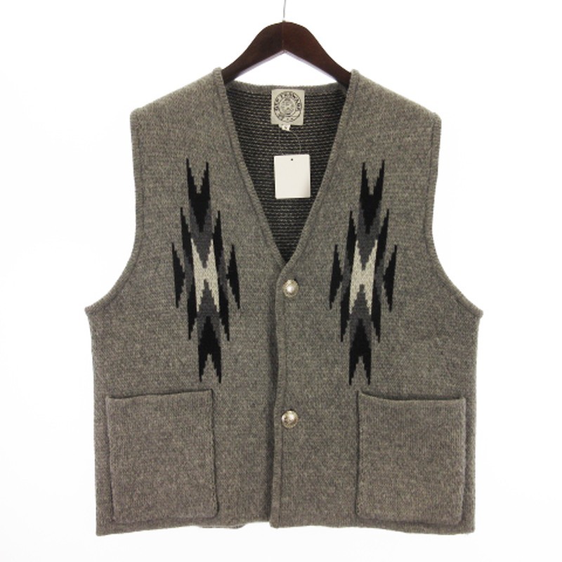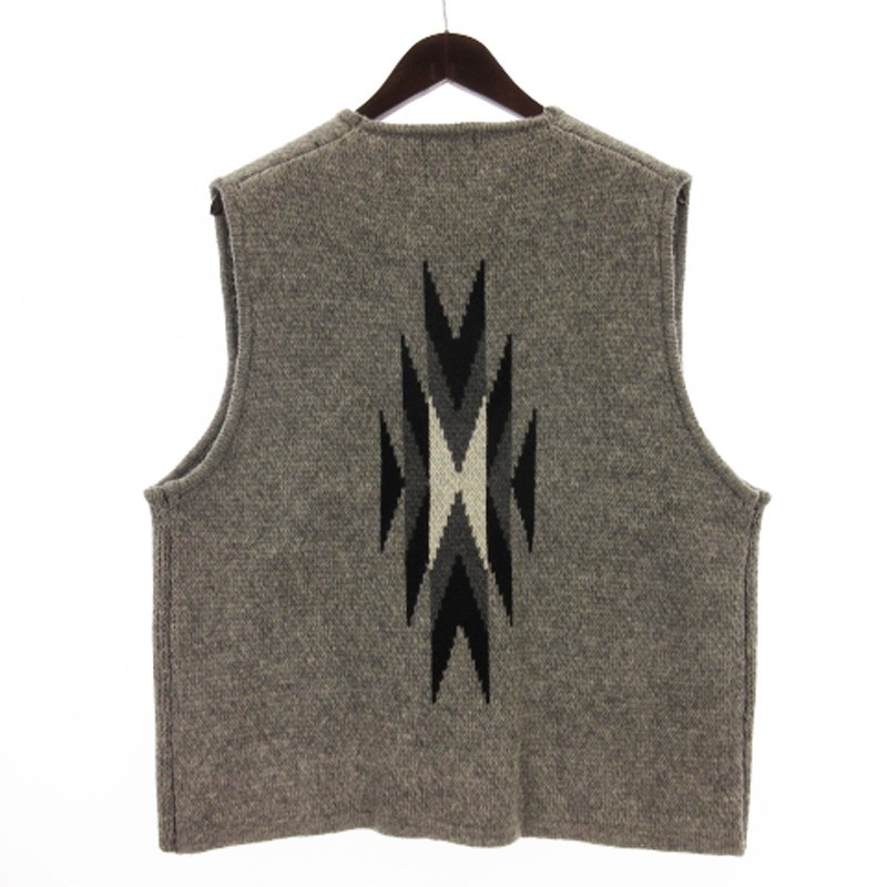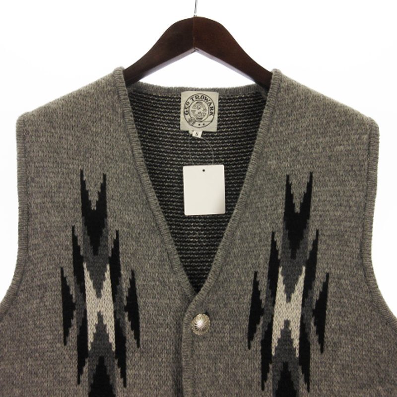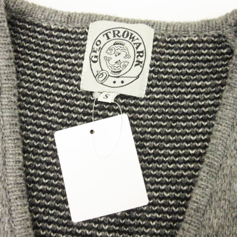未使用品 ジオトロワーク GEO TROWARK タグ付き ニット ベスト ジレ 前開き チマヨ柄 ウール混 グレー S メンズ