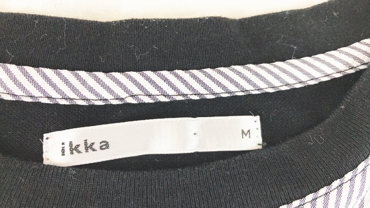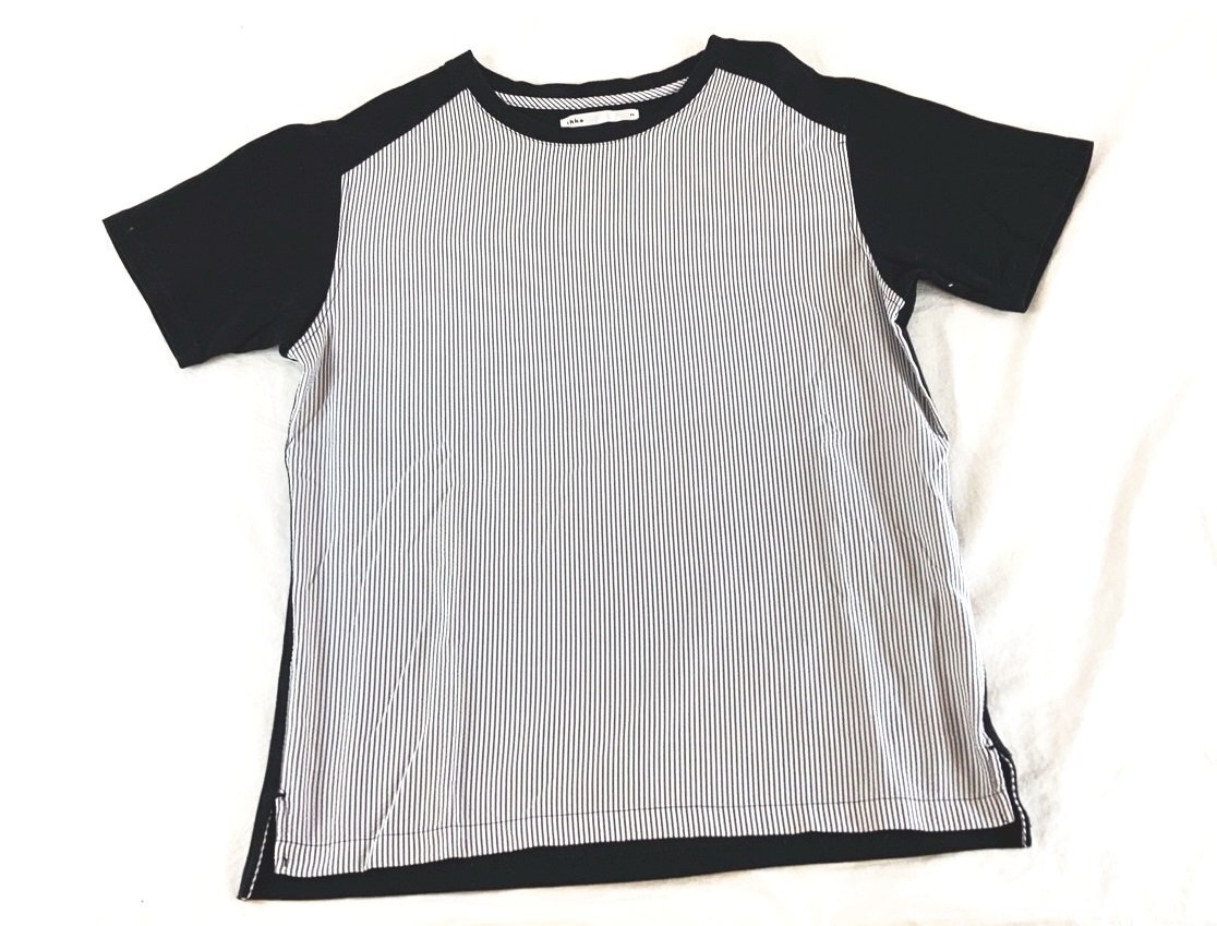 ikka イッカ 黒×白×グレーストライプ Tシャツ 半袖 M UD-9