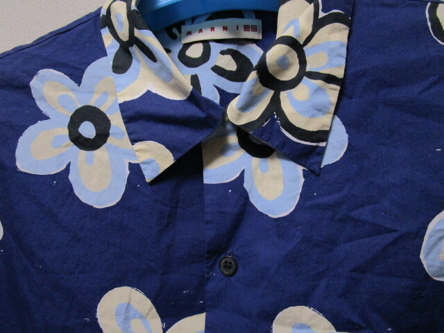 ユニクロxマルニ コラボ・オープンカラーシャツ・L・花柄・ブルー(Uniqlo x MARNI Oversized Open Collar Shirt半袖シャツ柄シャツ)