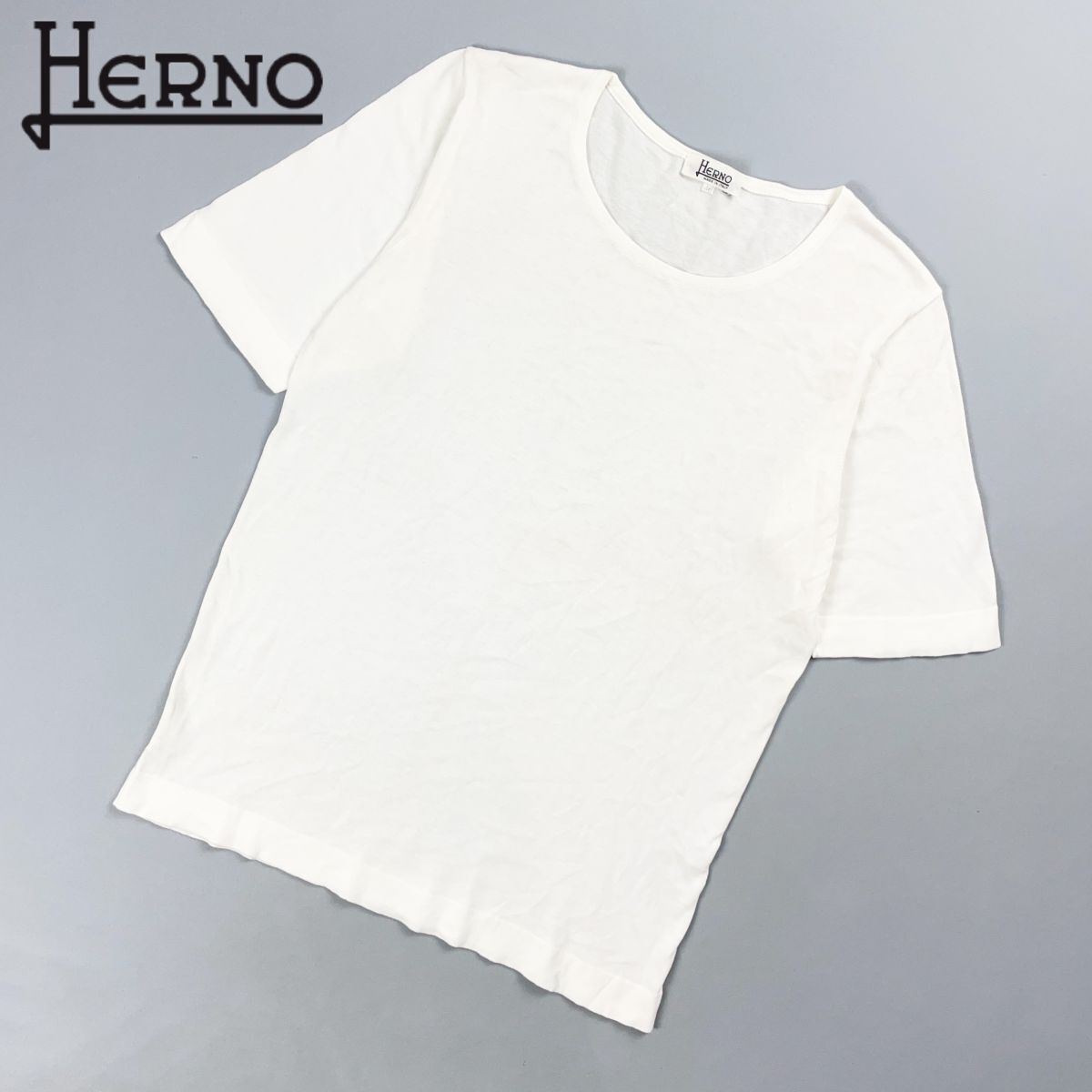 HERNO ヘルノ 半袖コットンニットTシャツ 白T クルーネック 薄手 無地 メンズ 白 ホワイト サイズ46*CD432