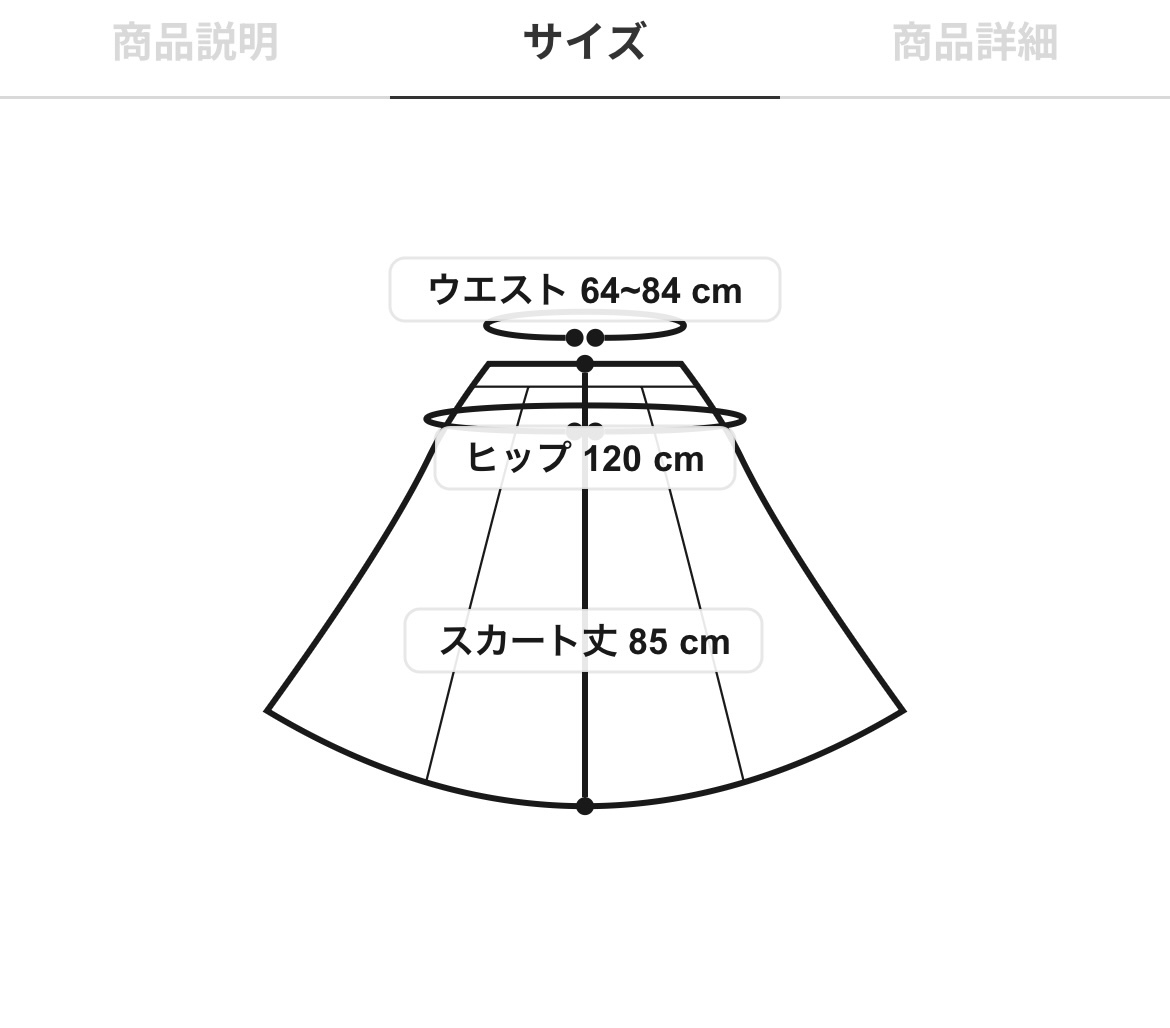 サイズ:36(9号)ウエスト64~84/スカート丈85/ヒップ120