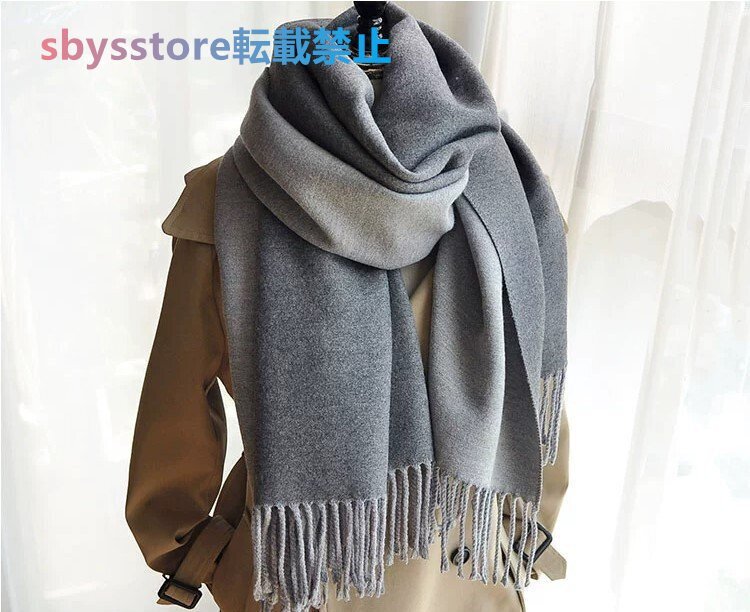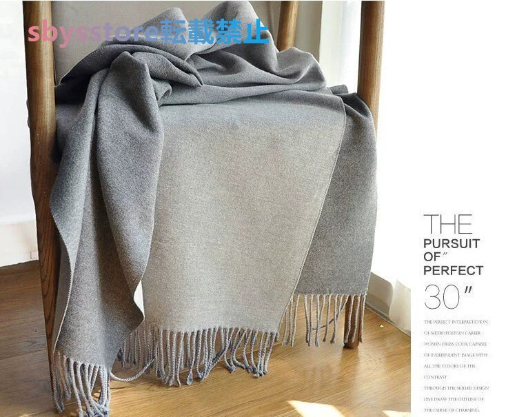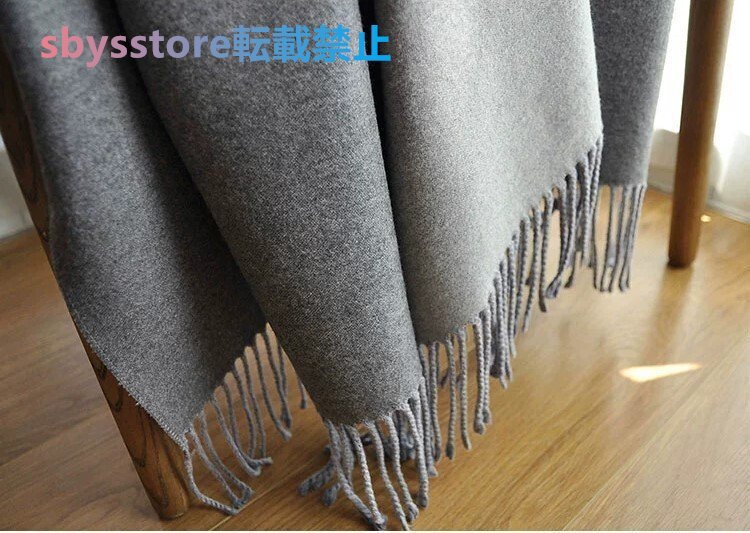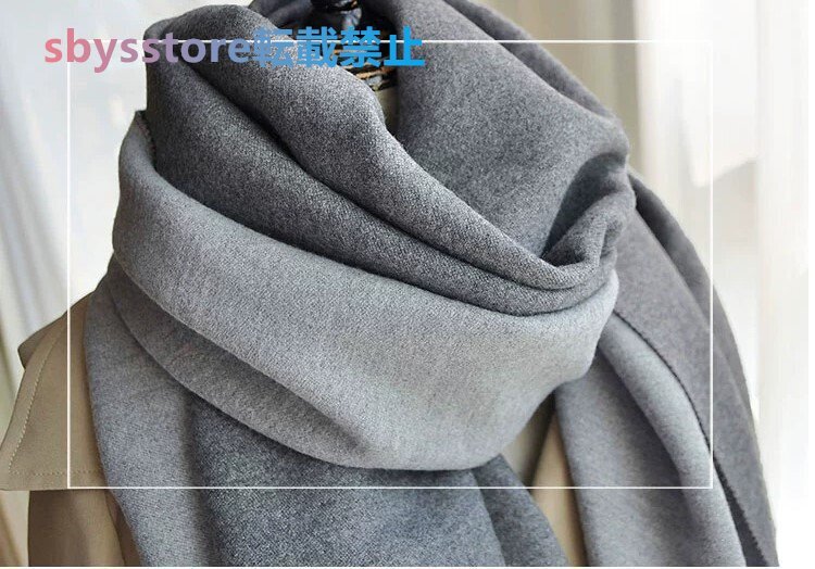 極上柔らか肌触り上質カシミヤ 暖かシンプル無地大判マフラー バーシブル仕様 防寒