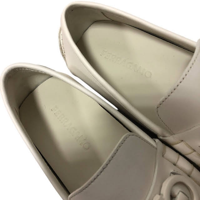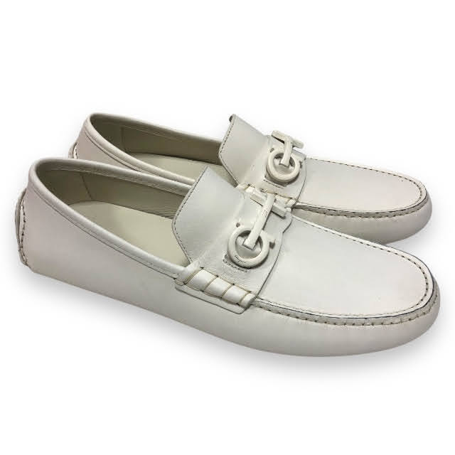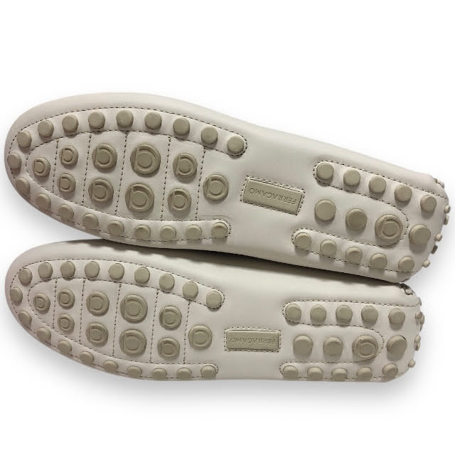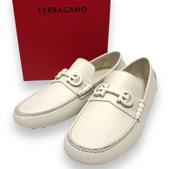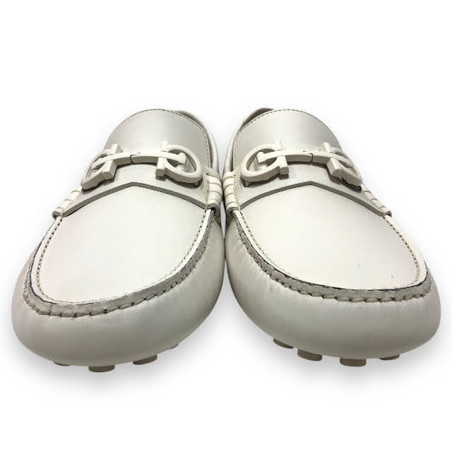 | ▼未使用【Salvatore Ferragamo】サルヴァトーレフェラガモ 新ロゴ ガンチーニ ドライビングシューズ サイズ8 1/2 ホワイト レザー 革 靴 RA8050 |