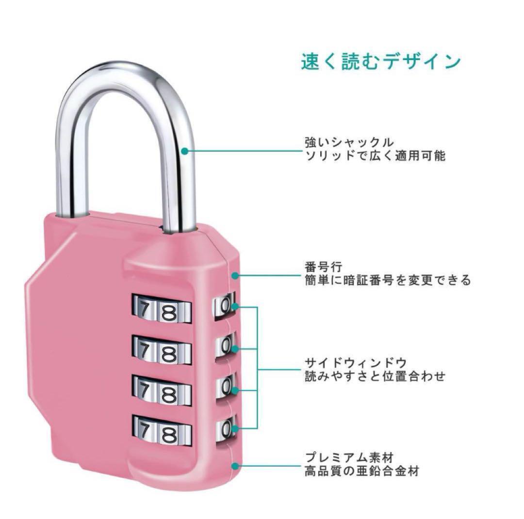4桁ダイヤル式: 10,000個の組合せがあり,ロックを破りにくくする南京錠 ダイヤルなのでキー(鍵)式のように紛失して開けられなくなる心配がありません,4桁ナンバーキー設計は3桁より10倍高いの安全性を確保します