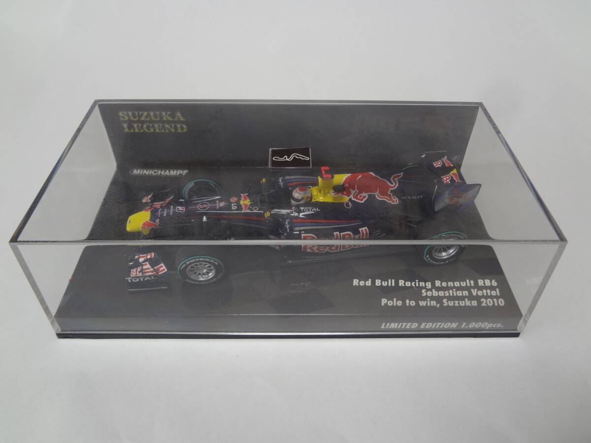 出品は2010年日本GPで優勝したS・ベッテルのレッドブルRB6で、鈴鹿レェジェンドパッケージです。本体はミニチャンプス製です。屋根裏保管で日焼け等はありません。プラケースも問題ありません。普通に店頭販売可能なレベルです。