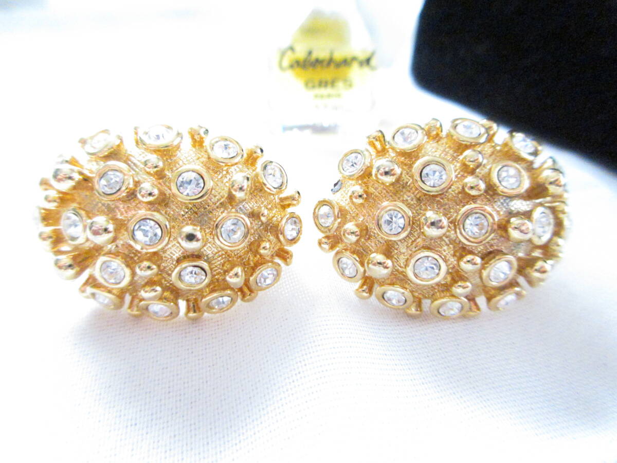 ♪ビンテージ/ヴィンテージ ゴールドトーンにクリアラインストーンが輝いて豪華感 ゴージャス感 重厚感 耳元華やぐキラキライヤリング