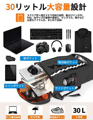 【30L大容量|拡張可能】サイズ:(45+13)cm*33cm*18cm 重量:約1KG 容量:約30L 人気のBOXスクエア型+幅広マチ、収納力抜群で、どんなシーンでも大活躍するリュックサックです。15.6インチPC、A4サイズの書類や2〜3日分の着替えなど必要なアイテムたっぷりと入る可能で、スマートな仕分けポケット付き大容量バックパックです。手動測定のため、小さな誤差がある場合があります。