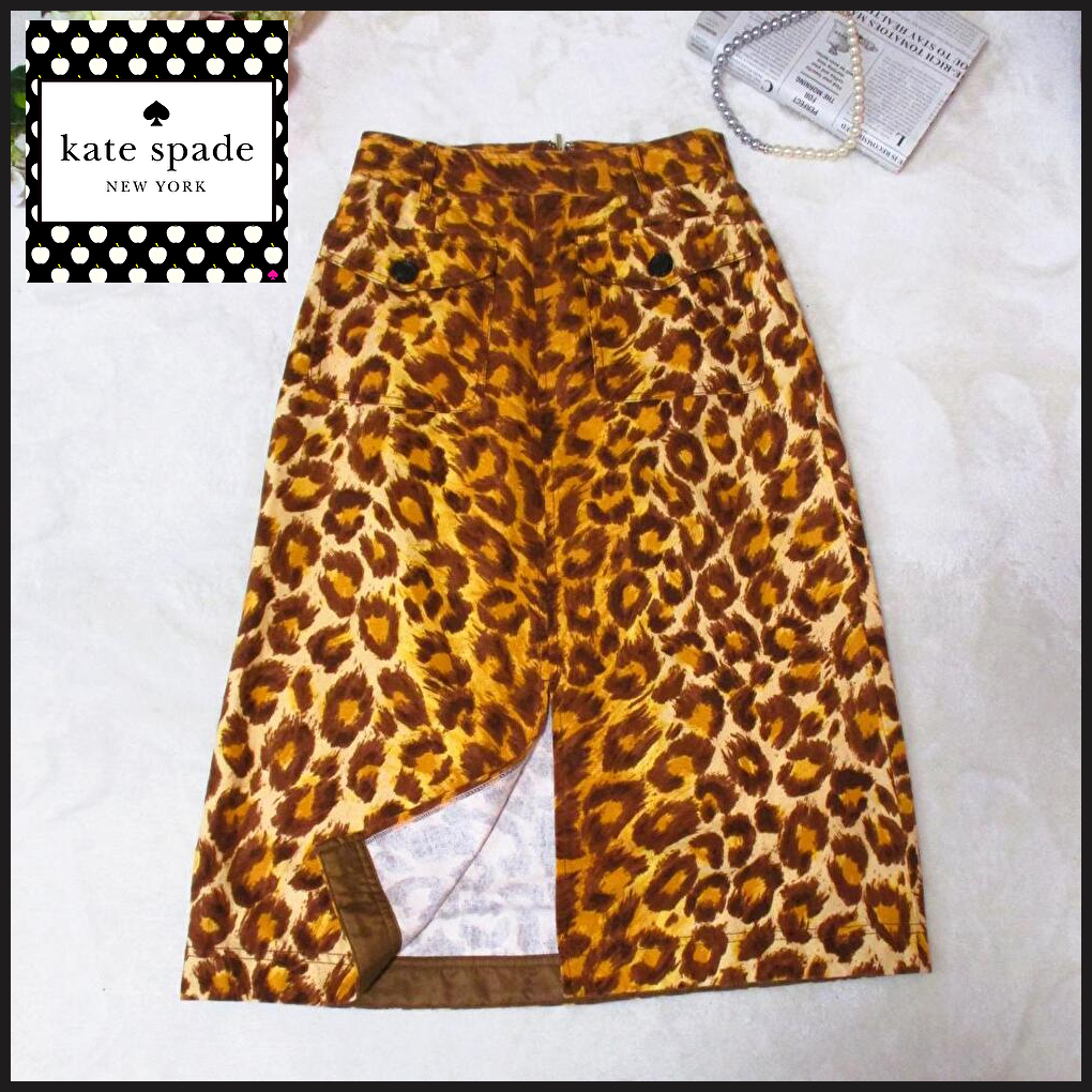 【ケイトスペード ニューヨーク】スカート レオパード柄 ヒョウ柄 手洗い XS 00 kate spade NEWYORK コットン リネン 匿名発送