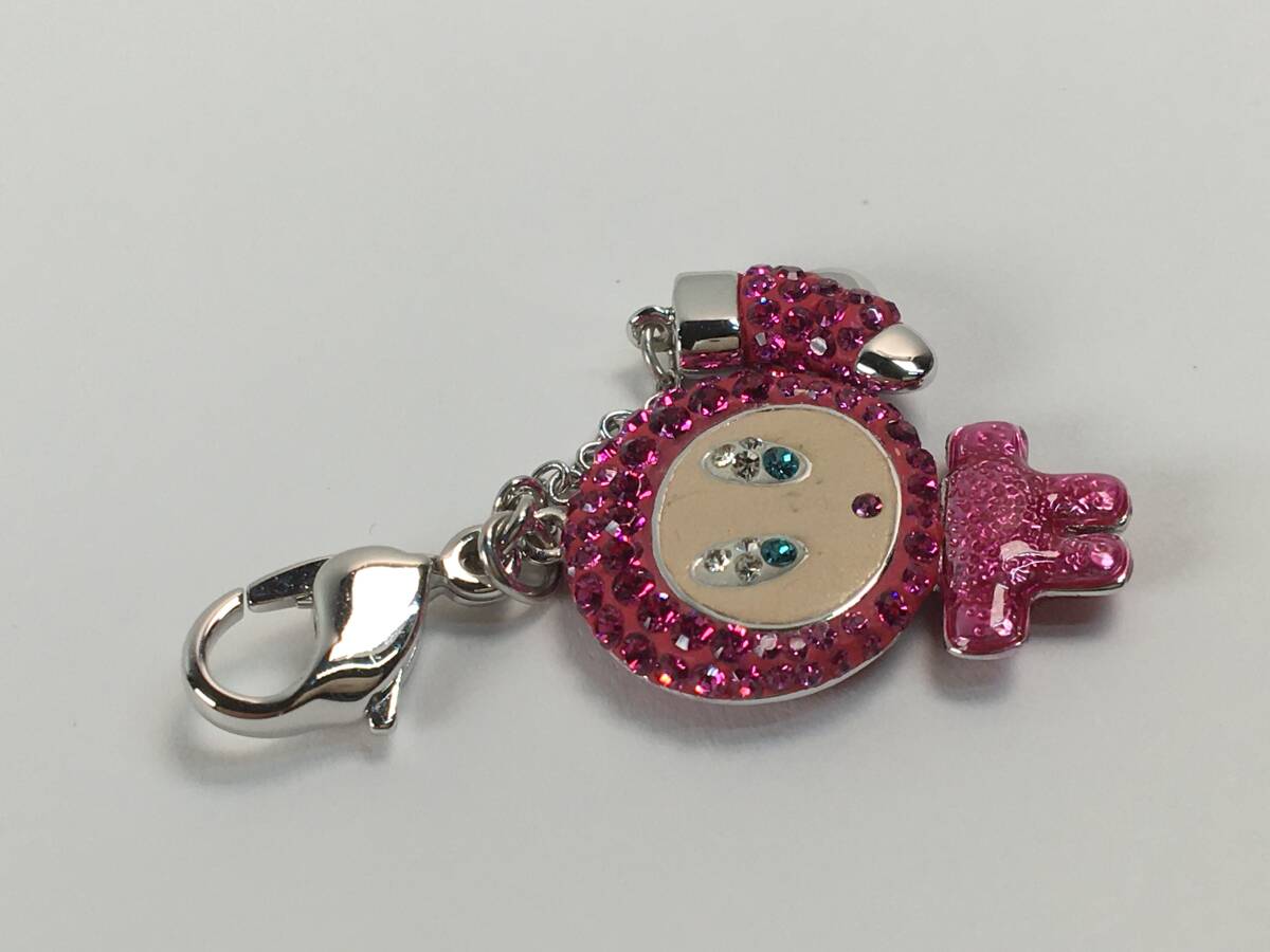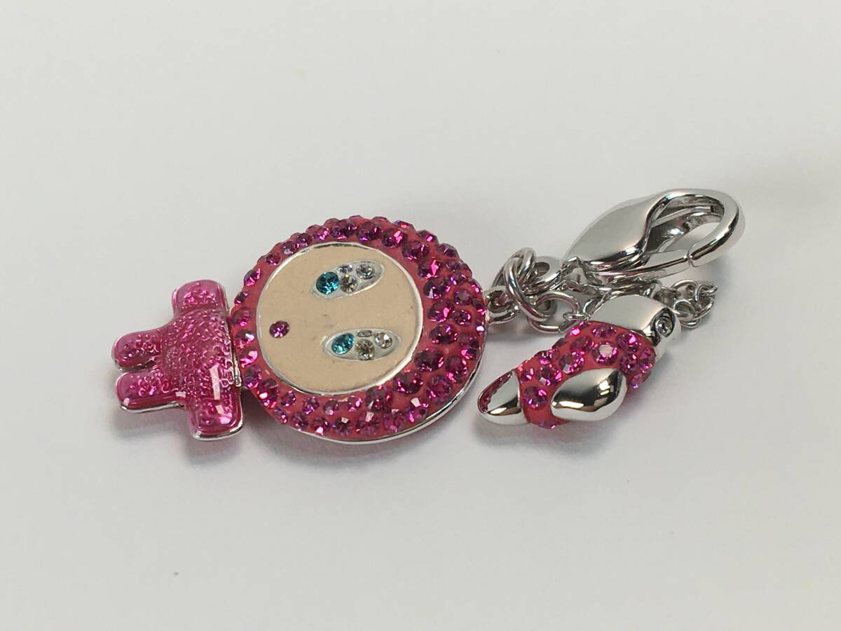 m1127 極希少レア 美品 スワロフスキー SWAROVSKI チャーム ストラップ エリカ ラインストーン ピンク 縦横2×1.8㎝ 全長 3.8㎝[パケ無料]