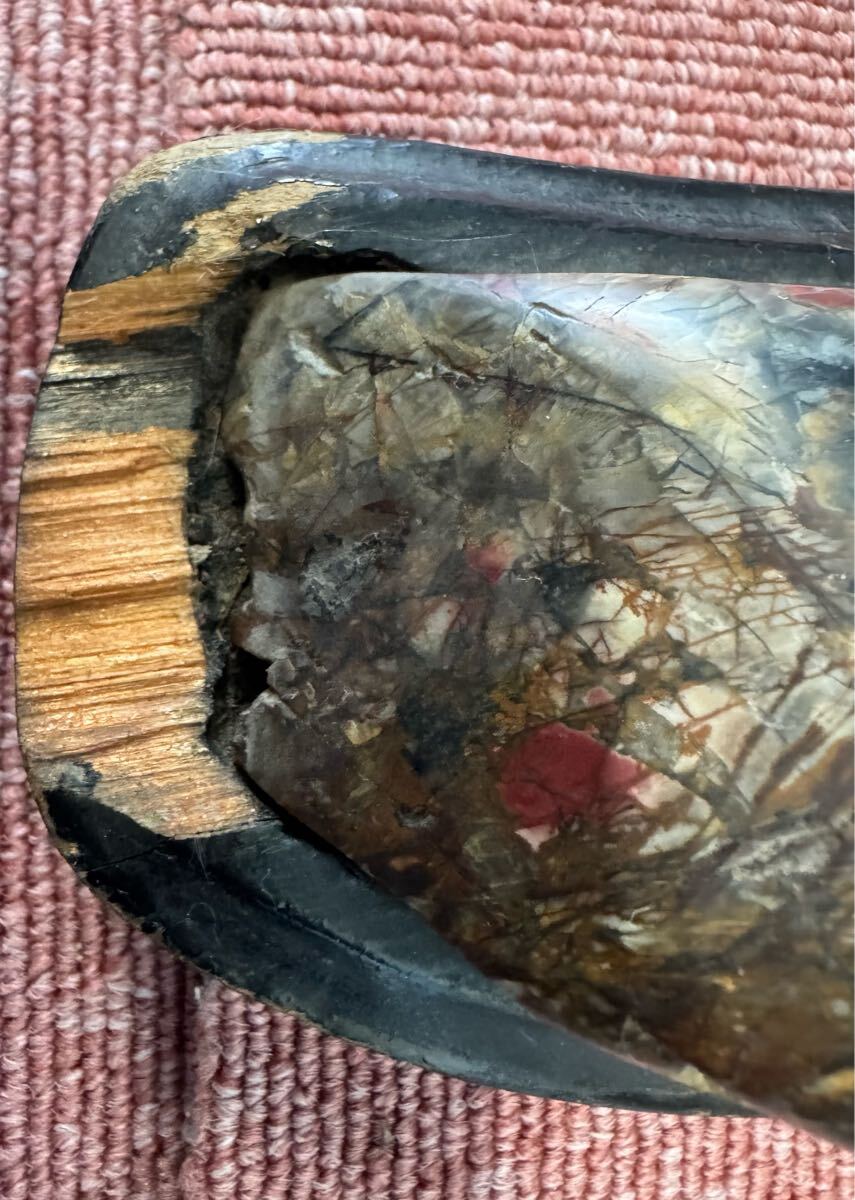 こちらは天然石の置物です。触るとひんやりとした感触があり、まるで山々が連なる風景のような形状をしています。石と台座は分離可能です。写真5枚目の一番右端に写っているように、付属の木製台座には一部欠けがございます。素人のため、素材や産地などの詳細は分かりかねます。また、写真のように細かなキズや汚れ等があるかと思いますので、状態は写真にてご確認・ご判断ください。