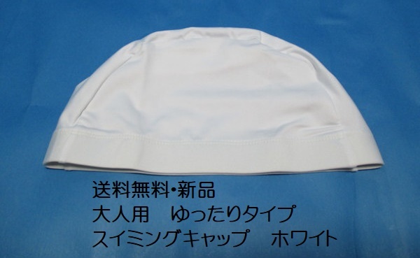 送料無料【新品】大人用 ゆったり スイムキャップ ホワイト フリーサイズ○●無地 白 スイミング 水泳帽 ツーウェイ素材