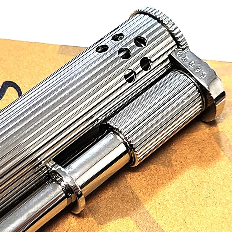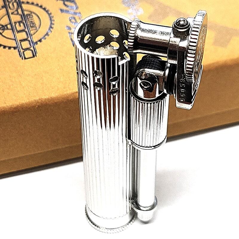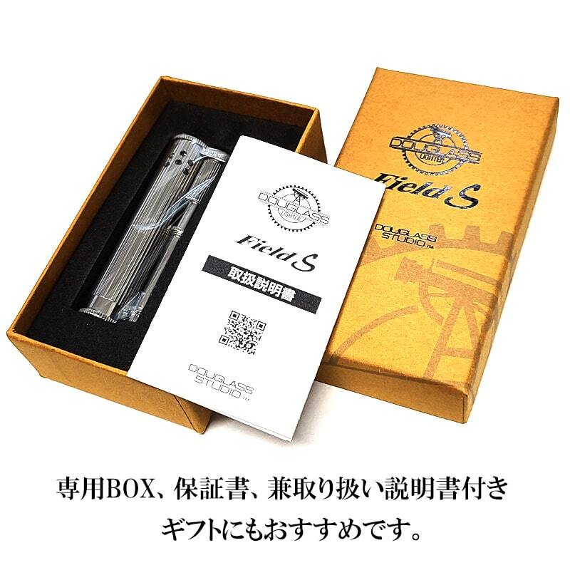 商品説明 | 「DOUGLASS Field S DSダイヤカット1」 ダグラスライターはアメリカの創造力と職人技が日本の技術力と職人技により現代に甦った逸品です。 その特徴は精密機械でありながらタフな仕上がりとなっている点です。1/100ミリ単位で計算された45点ものパーツの複合体でありながら卓越した防水性に設計されています。また、芯がボディと一体型の風防で囲まれているため風にも強いライターとなっています。 また、ヤスリに板バネを使わないという新技術も使われています。 1点1点職人が手作業で生産しており、大量生産はできない職人技を継承した高精度な日本製ライターです。 1926年にアメリカで造られたダグラスライターは、当時のアメリカの創造力と職人技を駆使した名品でありながら、 恐らく多くの人々があまり知ることのなかったブランド。それは今に残る有名ブランドのように今日まで永く歴史を刻んできたメーカーとは違い、 路半ばにしてその歴史を閉じてしまったメーカーだからでしょう。 しかし、ダグラスライターはダグラスライターも高い技術とクオリティを持ち、そこに秘められる技術のほとんどは 現代ですらとても大量生産に乗ることのできない、まったくのクラフトマンシップによる製品なのです。 そんな名品が職人の技術により現代に蘇った「DOUGLASS」ライターです。 |