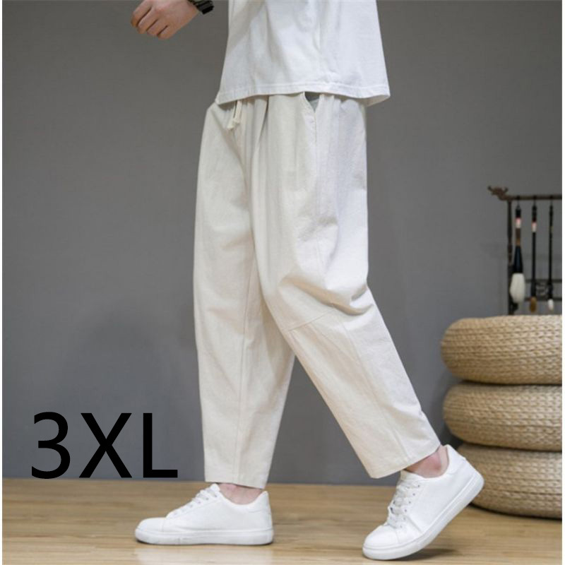 ★サルエルパンツ ワイドパンツ メンズ ズボン 涼しい ワイドパンツ アンクルパンツ ゆったり テーパード ボトムス 米色&ホワイト 3XL