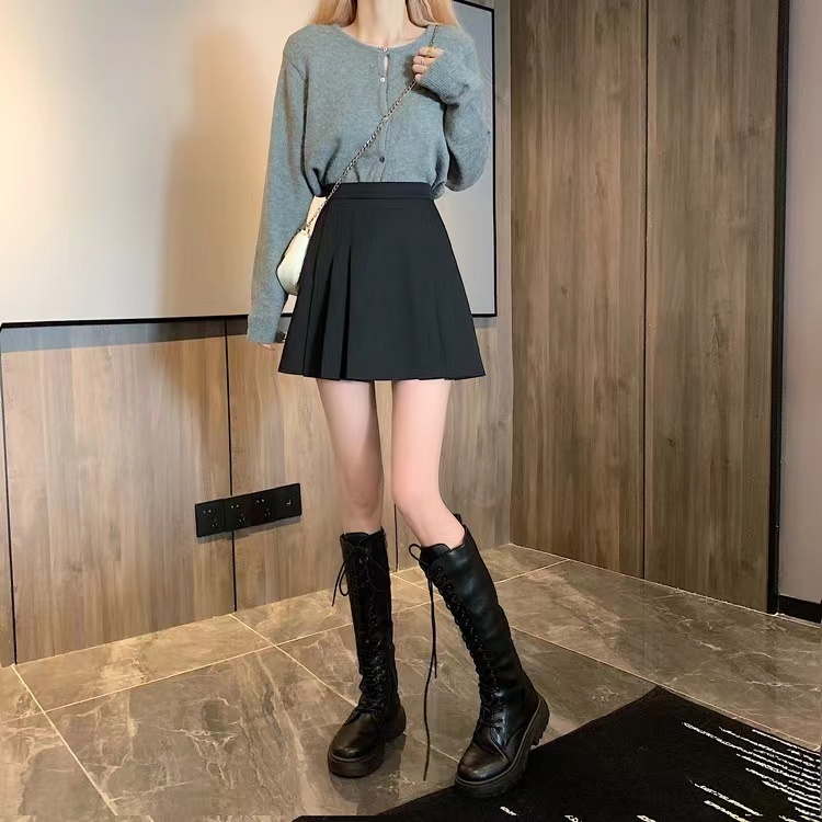 プリーツスカート ミニ丈 レディース フレアスカート 厚手 無地 ハイウエスト コーデ カジュアル おしゃれ きれいめ ブラック XL