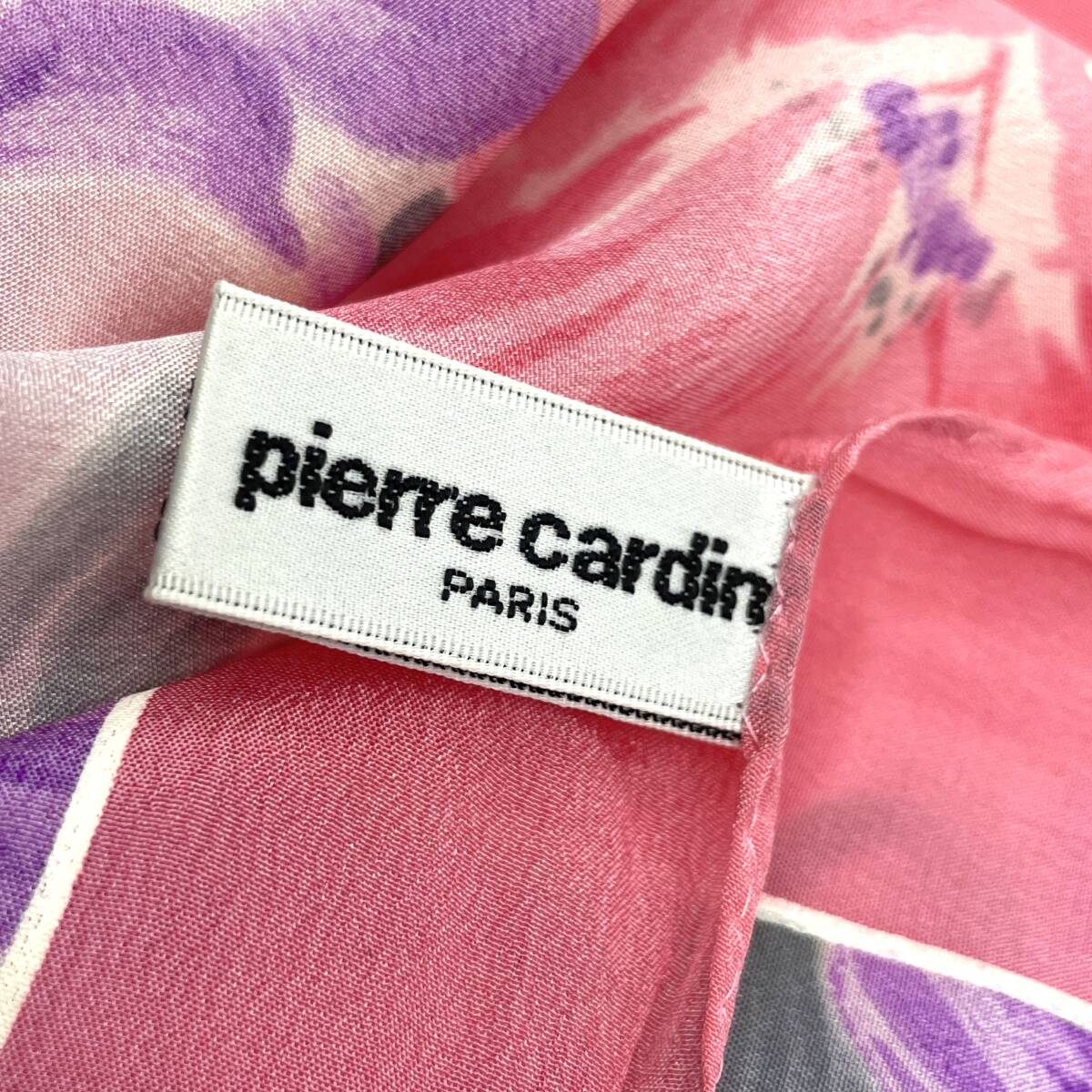 pierre cardin ピエールカルダン 大判 スカーフ バンダナ ピンク×パープル 花柄 フラワー シルク100% エレガント ラグジュアリー